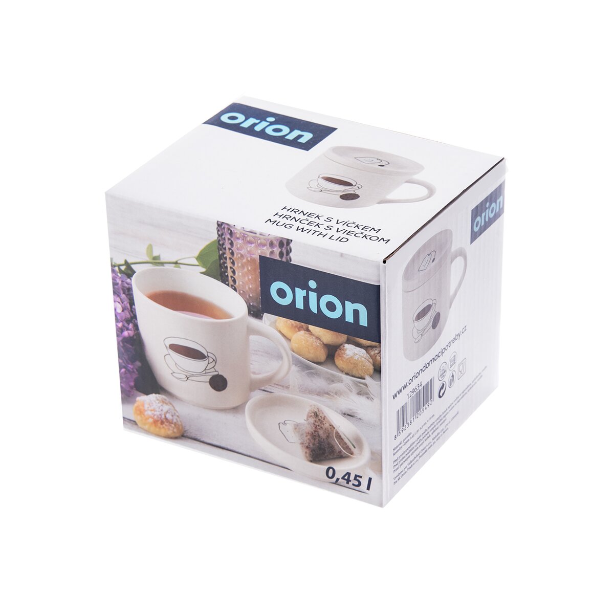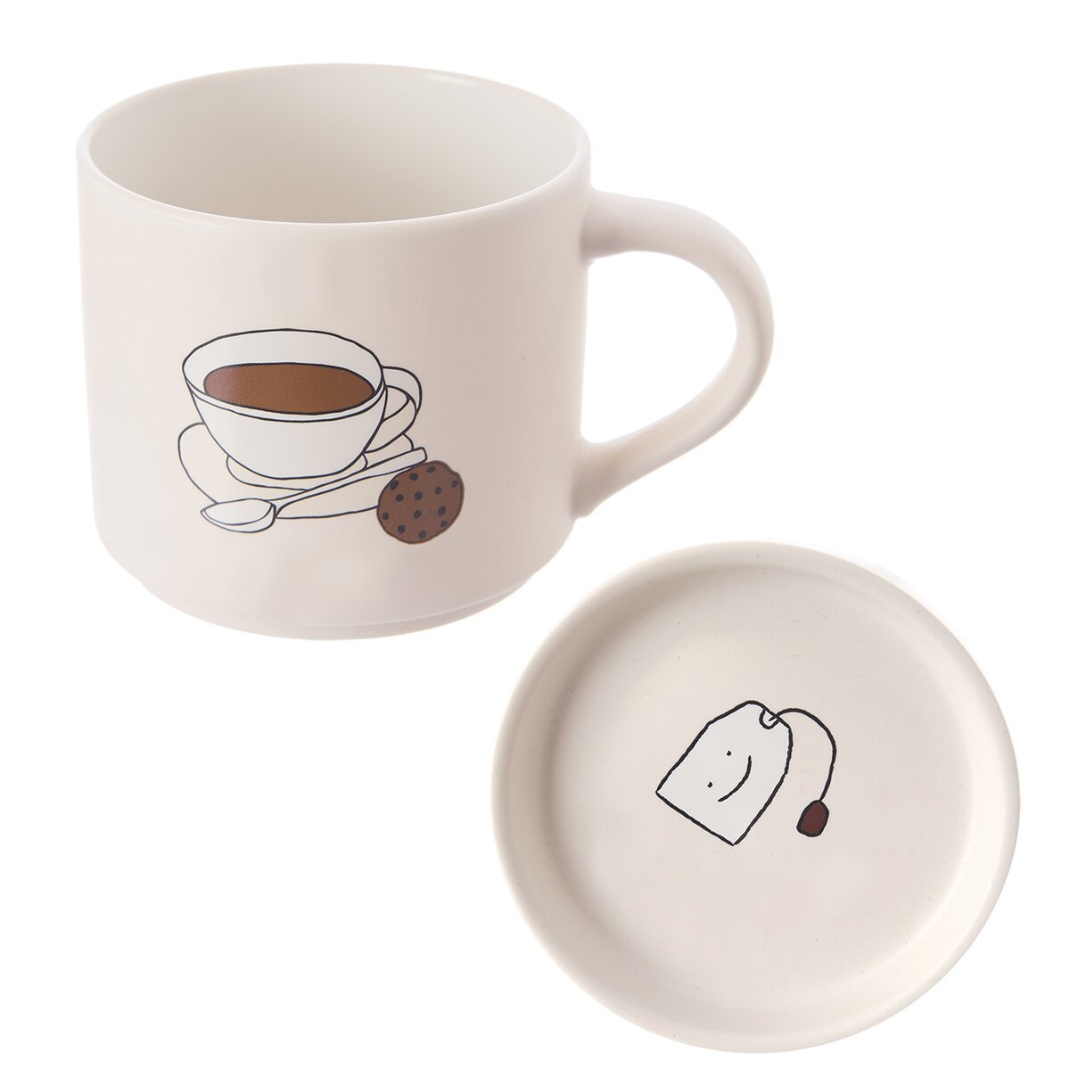 Kód produktu 129634Světlý hrnek o objemu 0,45 l, s dekorem šálku, je doplněn víčkem. To lze používat k přiklopení nápoje, jako podtácek nebo k odložení nálevého sáčku vedle hrnku.