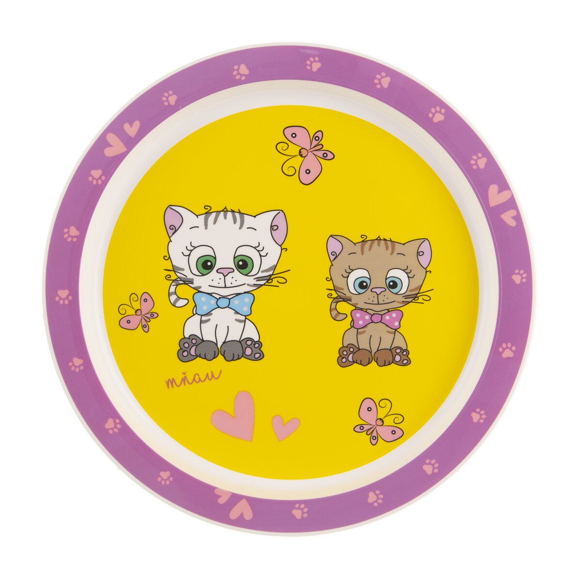 Kód produktu 112369Plastová jídelní sada KOCOUŘI obsahuje pohár o objemu 280 ml, talíř průměru 21,5 cm a misku průměru 16 cm.
