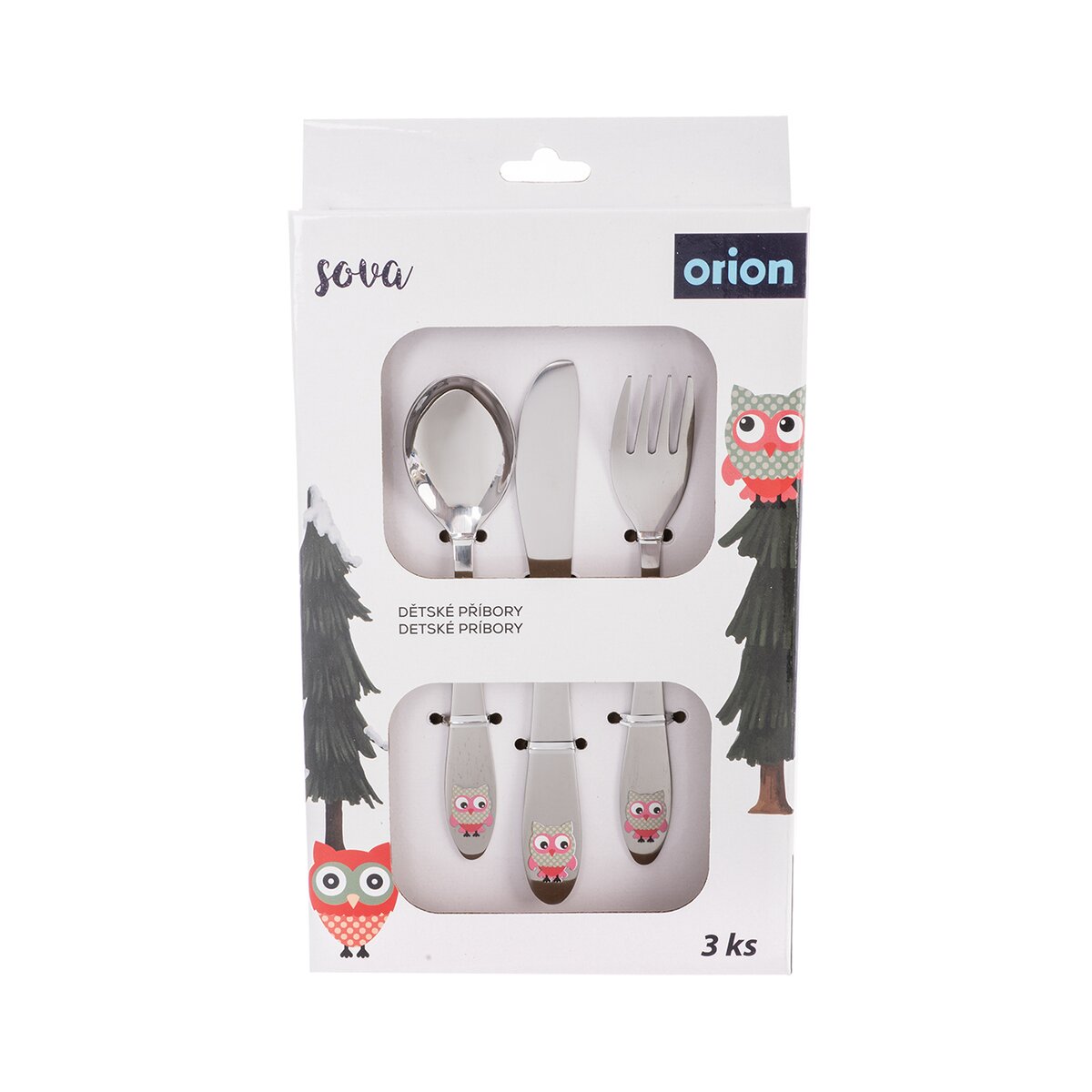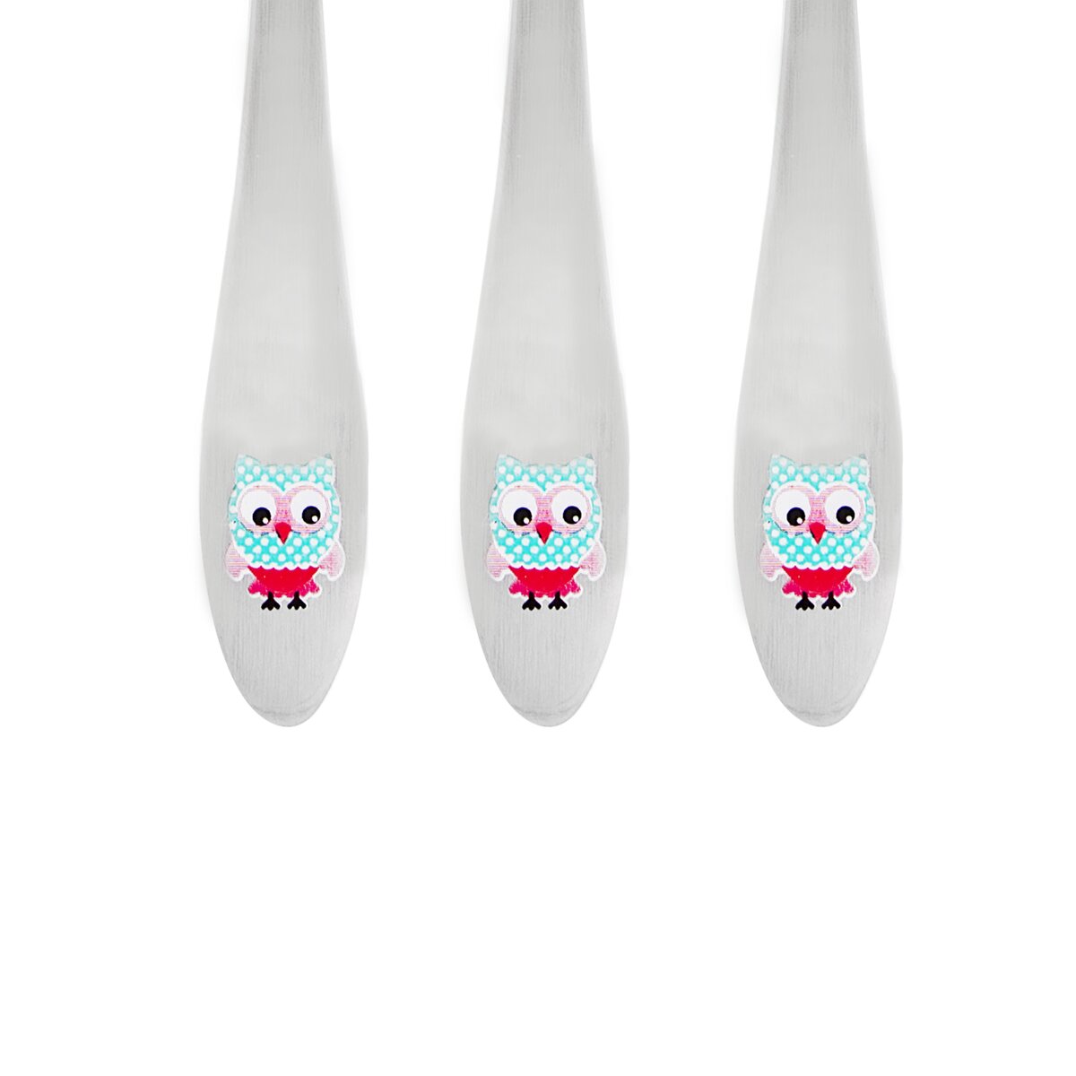 Kód produktu 143675Set dětských nerezových příborů s barevným motivem sovy obsahuje lžíci, vidličku a nůž a je určen pro každodenní používání.