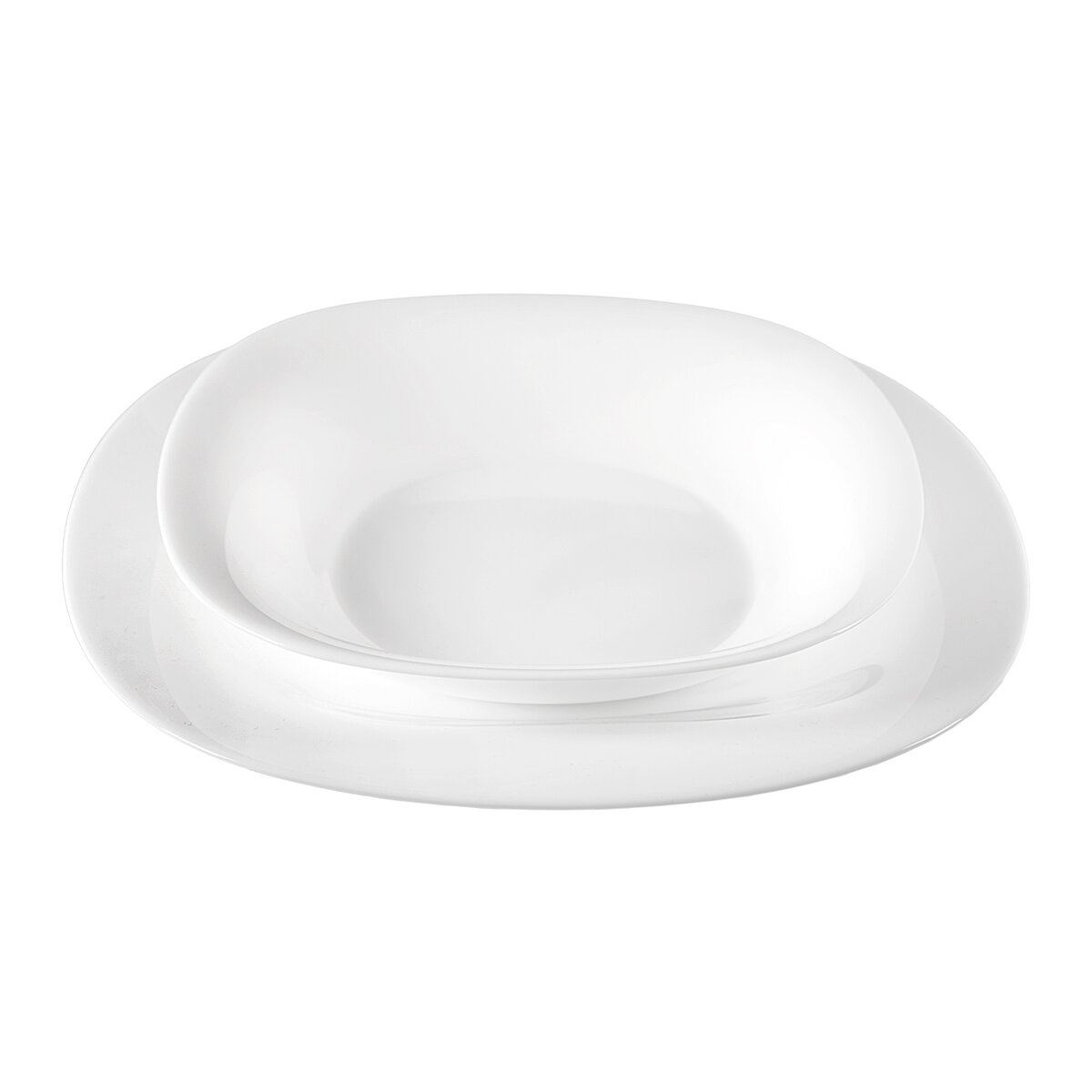 Kód produktu 129559Jídelní sada LUNA z opálového skla je tvořena 6 dezertními, 6 hlubokými a 6 mělkými talíři hranatého tvaru.