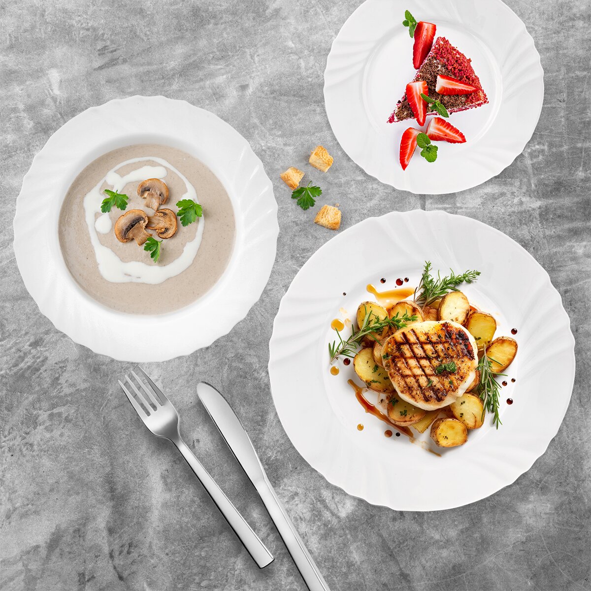 Jídelní sadu si můžete doplnit podle vlastní potřeby. Všechny typy těchto talířů z kolekce LUNA VLNKY nabízíme také jednotlivě, takže lze doplnit a zvětšit si sadu pro příležitost rodinných oslav apod.