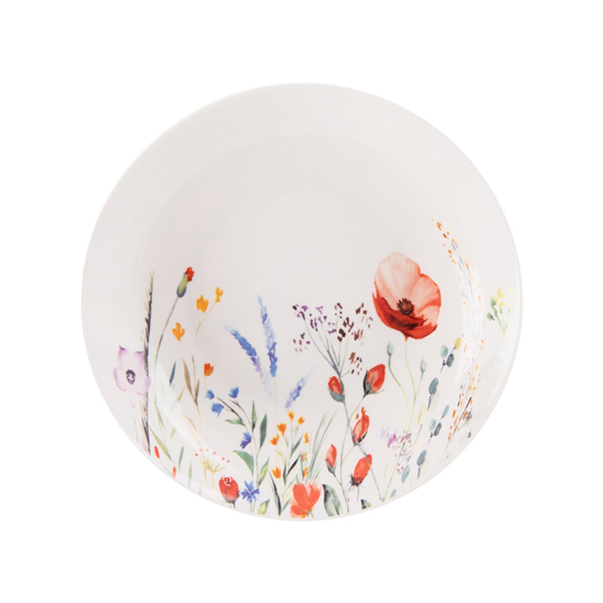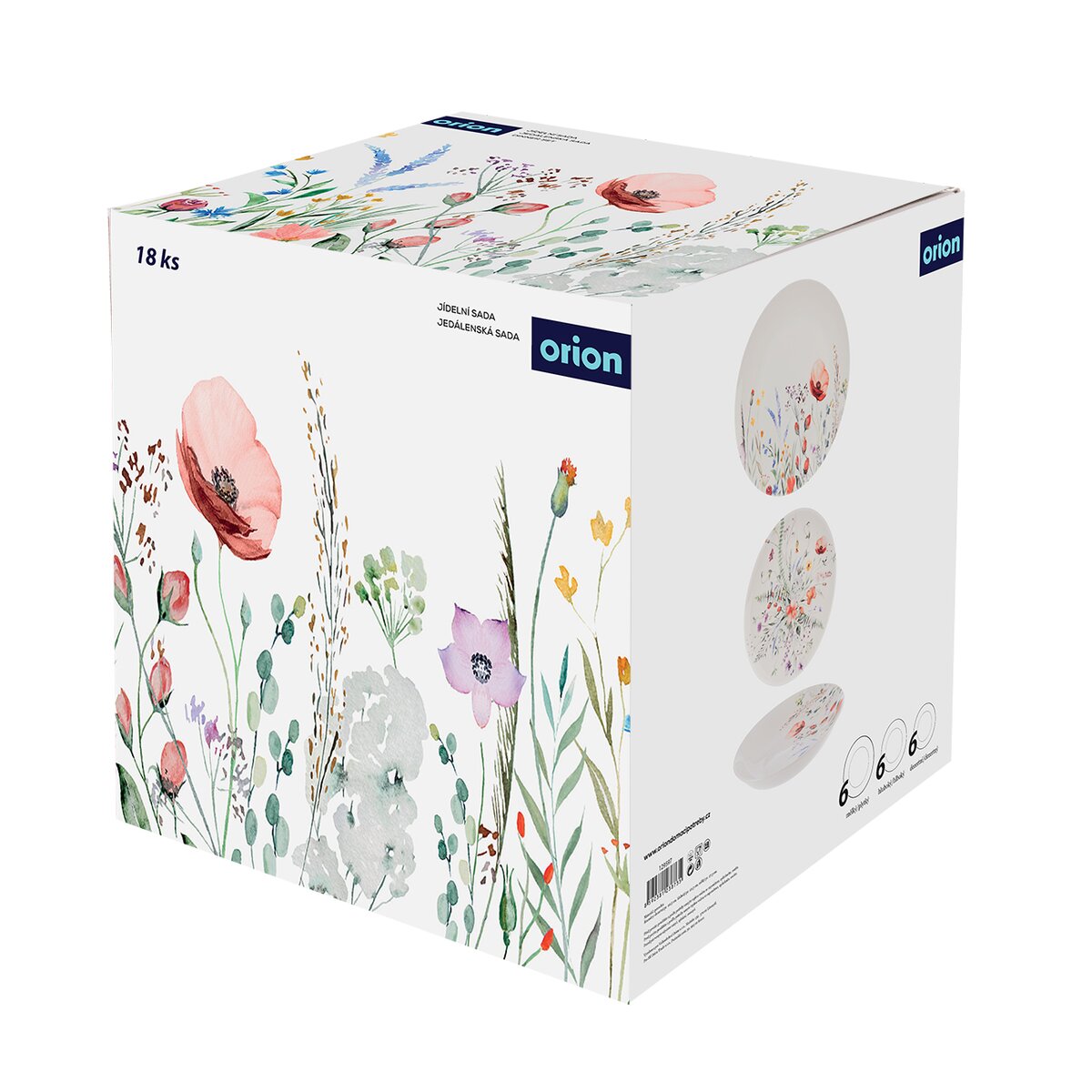 Kód produktu 129597Jídelní porcelánová sada MÁK je tvořená šesti dezertními, šesti hlubokými a šesti mělkými talíři s něžným dekorem lučních květin a vlčích máků.