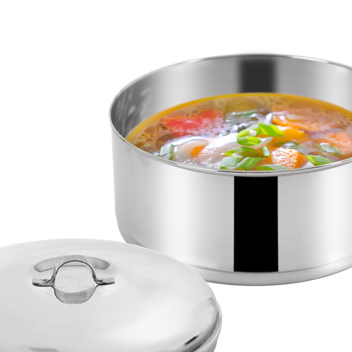 Obsahuje 4 nerezové misky o objemu 1 litr, budou ideální pro uložení celého menu, polévky, hlavního jídla, samostatné přílohy a dezertu. Jeho součástí je také kovový stojan, který umožňuje skládání nádob na sebe a zároveň je opatřený přezkou sloužící k jejich pevnému zajištění.