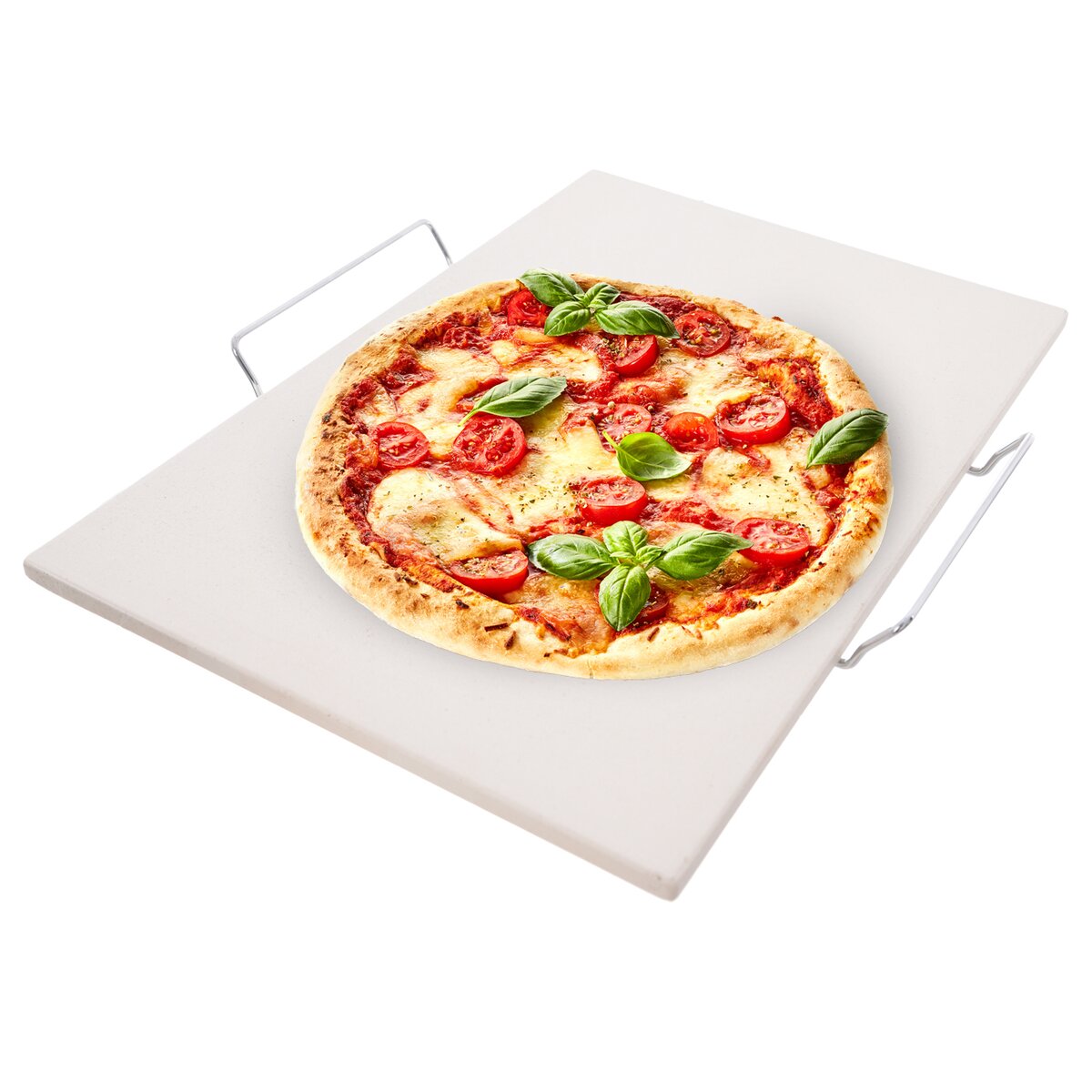 Součástí je i drátěný podstavec s praktickými rukojeťmi, které zajistí snadnější manipulaci, i když je kámen rozpálený. Vhodný do elektrické, horkovzdušné i plynové trouby do 250 °C, samotný kámen snese teplotu až do 800 °C.