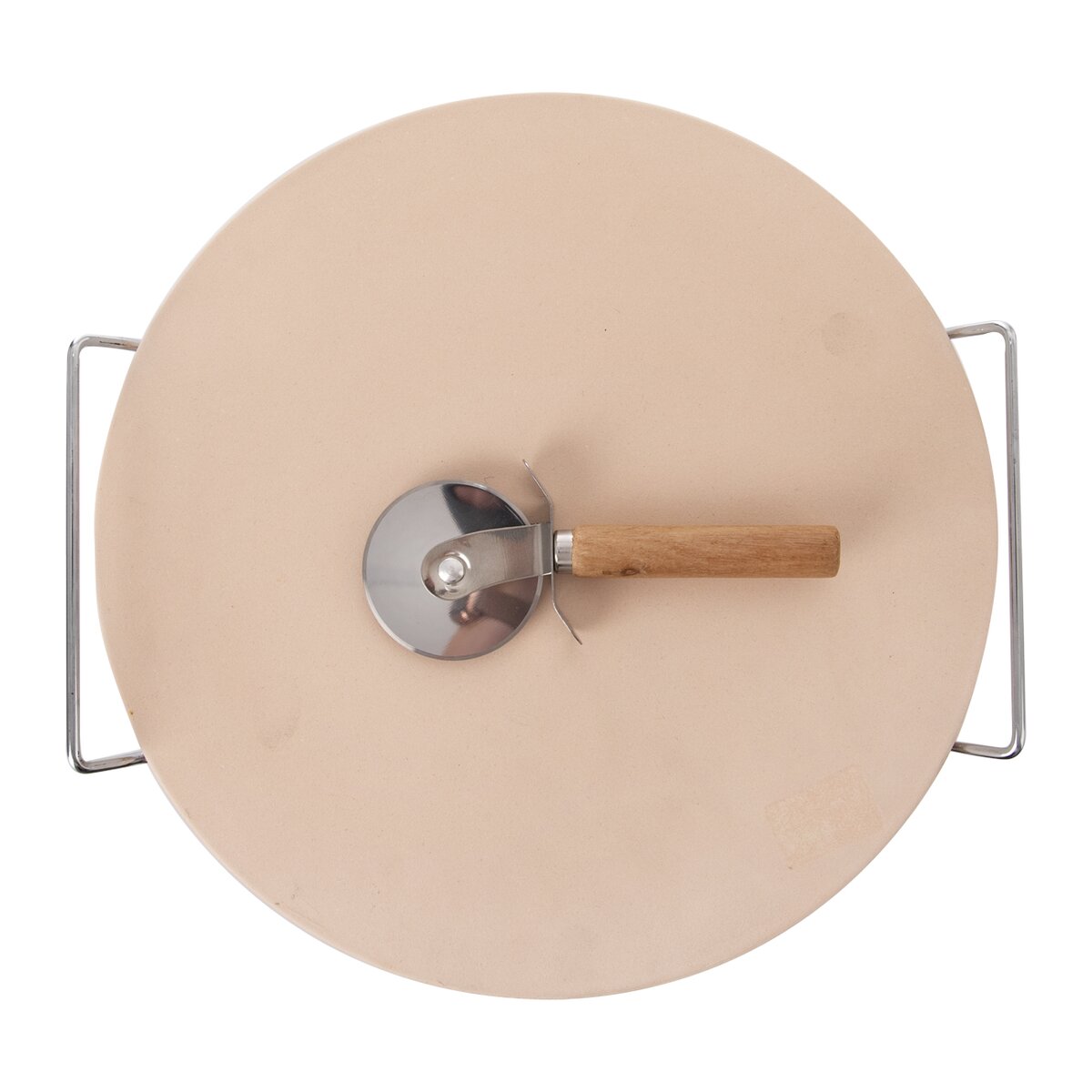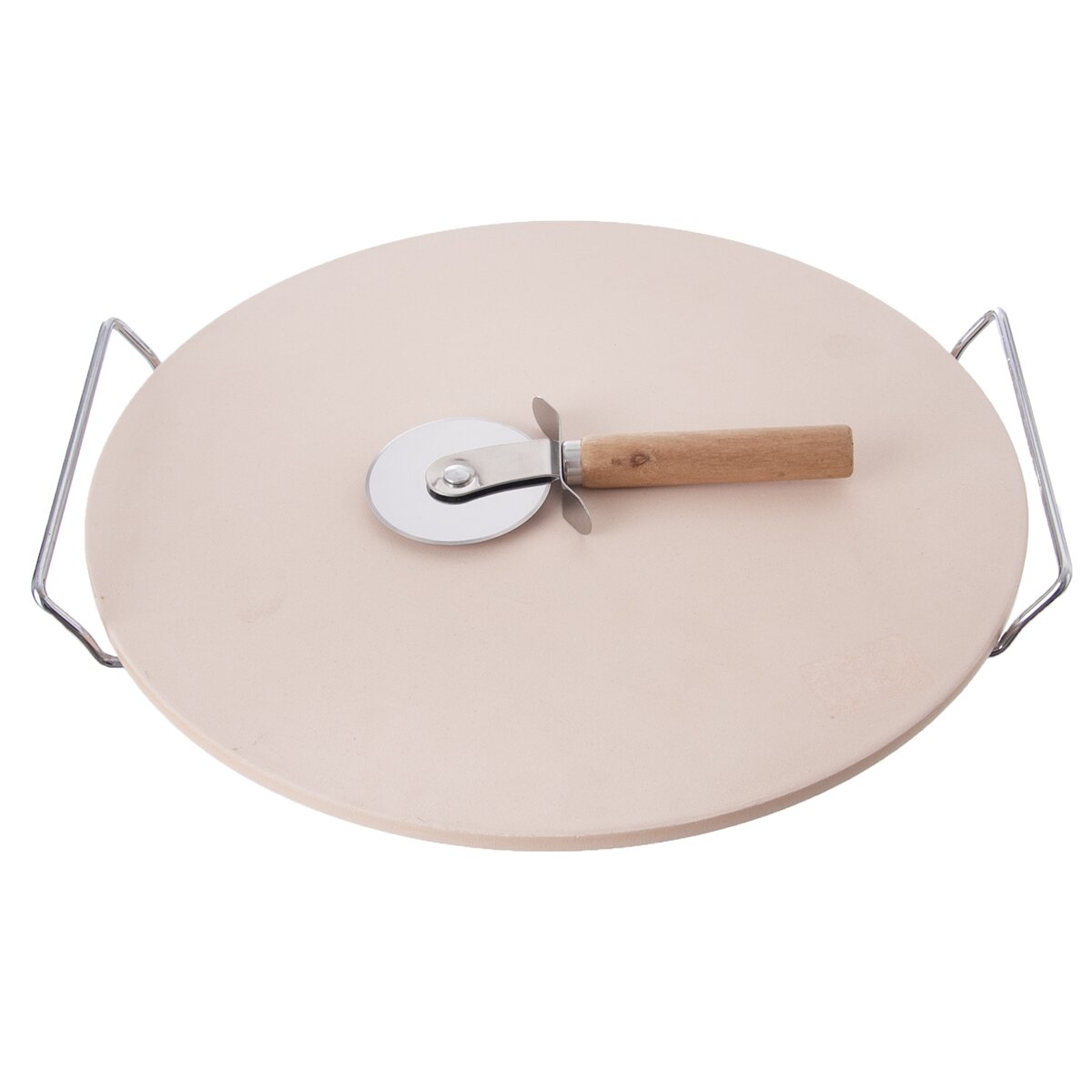 Kód produktu 123778Kulatá kameninová deska průměru 33 cm cm, ideální na pečení křupavé pizzy, chleba, masa, ryb i zeleniny ve všech typech trub. Součástí je drátěný stojan a kovový kráječ na pizzu s dřevěnou rukojetí.