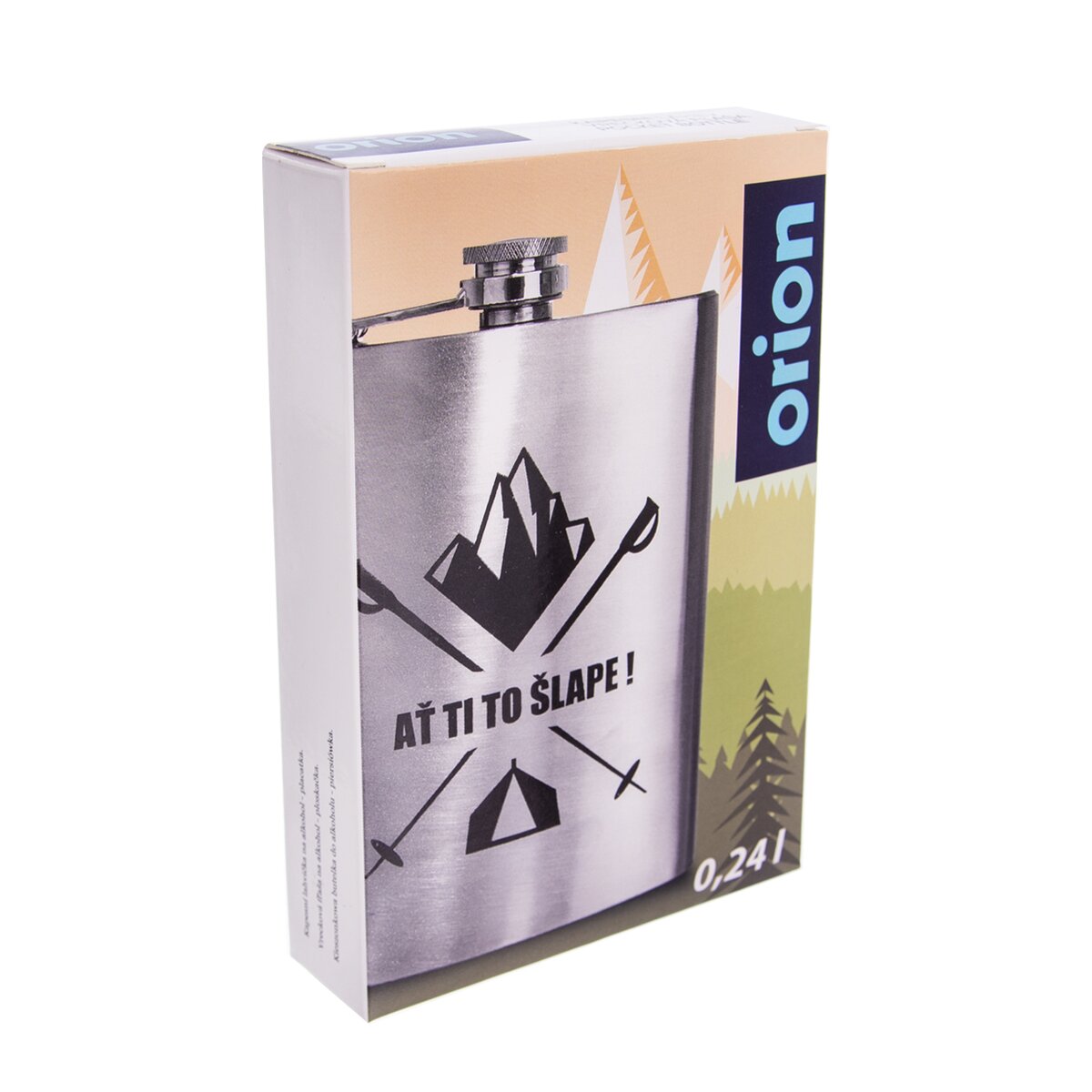 Pro všechny milovníky turistiky, hor a dobrodružství. Tato nerezová placatka o objemu 240 ml zapadne do jakékoliv větší kapsy. Je vyrobená z kvalitní nerezové oceli a má šroubovací uzávěr, který zabraňuje jejímu vylití.