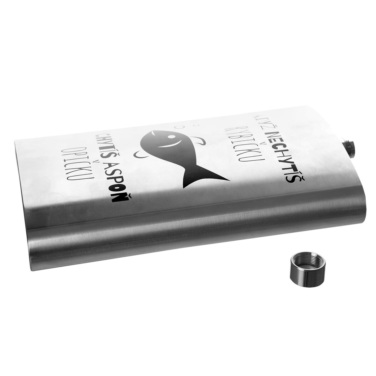 Zdobí ji dekor RYBIČKA s vtipným nápisem „Když nechytíš rybičku, chytíš aspoň opičku“, který vykouzlí úsměv na tváři každého obdarovaného. Navíc je vyrobená z kvalitní nerezové oceli a má šroubovací uzávěr zabraňující vylití tekutiny.