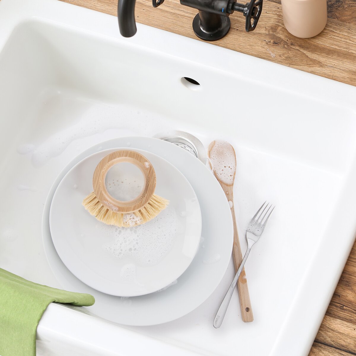 Tento kartáč se zajímavě tvarovanou rukojetí najde v domácnosti široké uplatnění. Kromě mytí nádobí a úklidu domácnosti vám pomůže očistit ovoce a zeleninu ze zahrádky, lze jej použít i v koupelně. Masivní zaoblená rukojeť dobře padne do ruky, můžete jej pověsit a tím podpořit jeho lepší a rychlejší prosychání. Při odstraňování nečistot z nádobí zároveň doporučujeme netoxické čisticí prostředky, které jsou šetrné k životnímu prostředí.