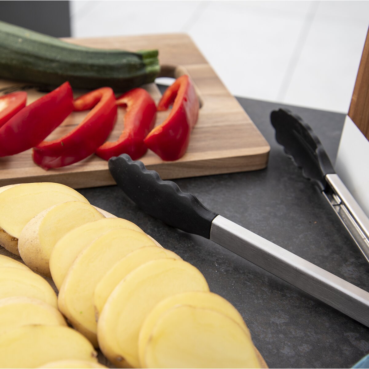Kód produktu 143901Kovové kleště se silikonovými čelistmi a ochrannou vrstvou silikonu na rukojeti využijete v kuchyni k obracení horkých smažených pokrmů i při grilování nebo servírování salátů.