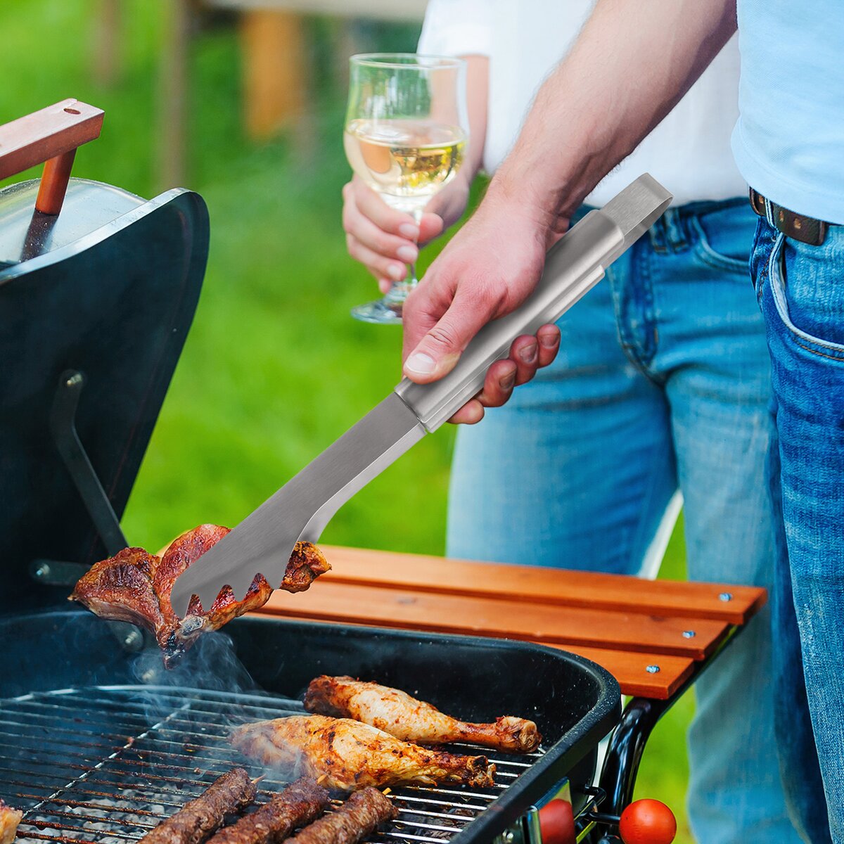 Kuchařské kleště z nerezové oceli délky 43 cm jsou výborným pomocníkem při otáčení grilovaného, opékaného masa, ryb, horkých smažených pokrmů a jiných dobrot na pánvích a grilovacích deskách.