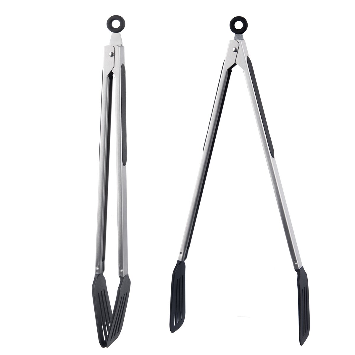 Kód produktu 143914Kleště/obracečka najdou široké uplatnění ve Vaší kuchyni při pečení, smažení, vaření, při servírování a dekorování pokrmů a díky své délce budou ideálním pomocníkem při grilování. Materiál: nerezová ocel, termoplast PBT, termoplastická guma TPR. Lze používat až do teploty +200 °C. Jednoduchou manipulací (vysunutím) závěsného očka dochází k uzavření kleští. Lze mýt v myčce na nádobí. Rozměry: š. 5,5 cm, d. 44 cm.