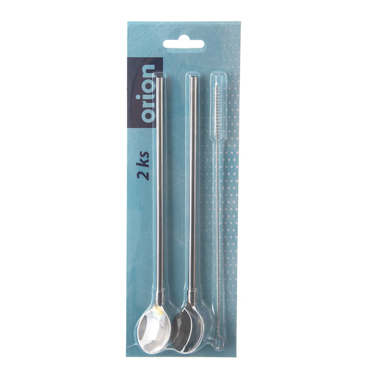 Koktejlová lžička s brčkem 2 ks + kartáček