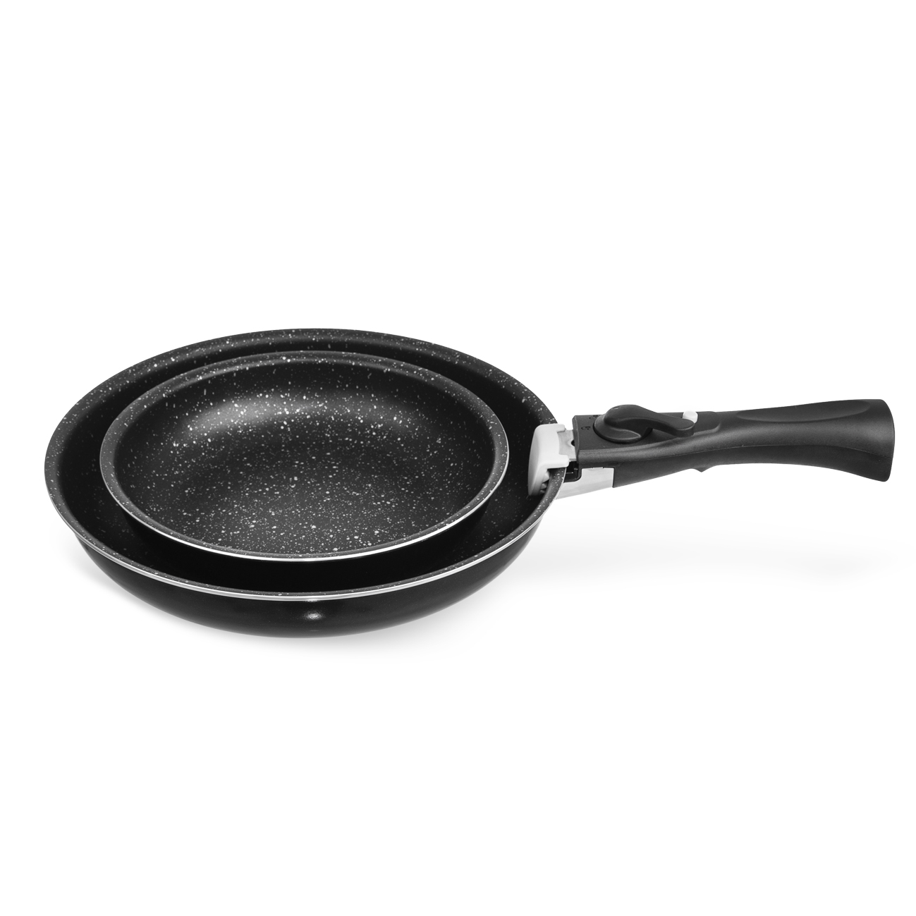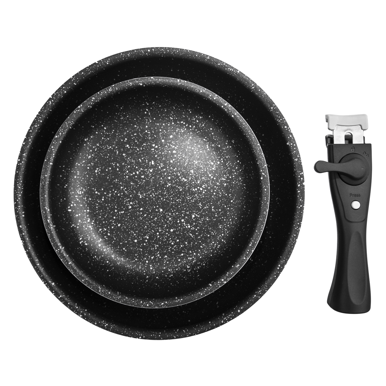 Tato rukojeť se snadno připíná i odepíná, což šetří prostor a umožňuje snadné používání více kusů nádobí bez nutnosti měnit příslušenství.