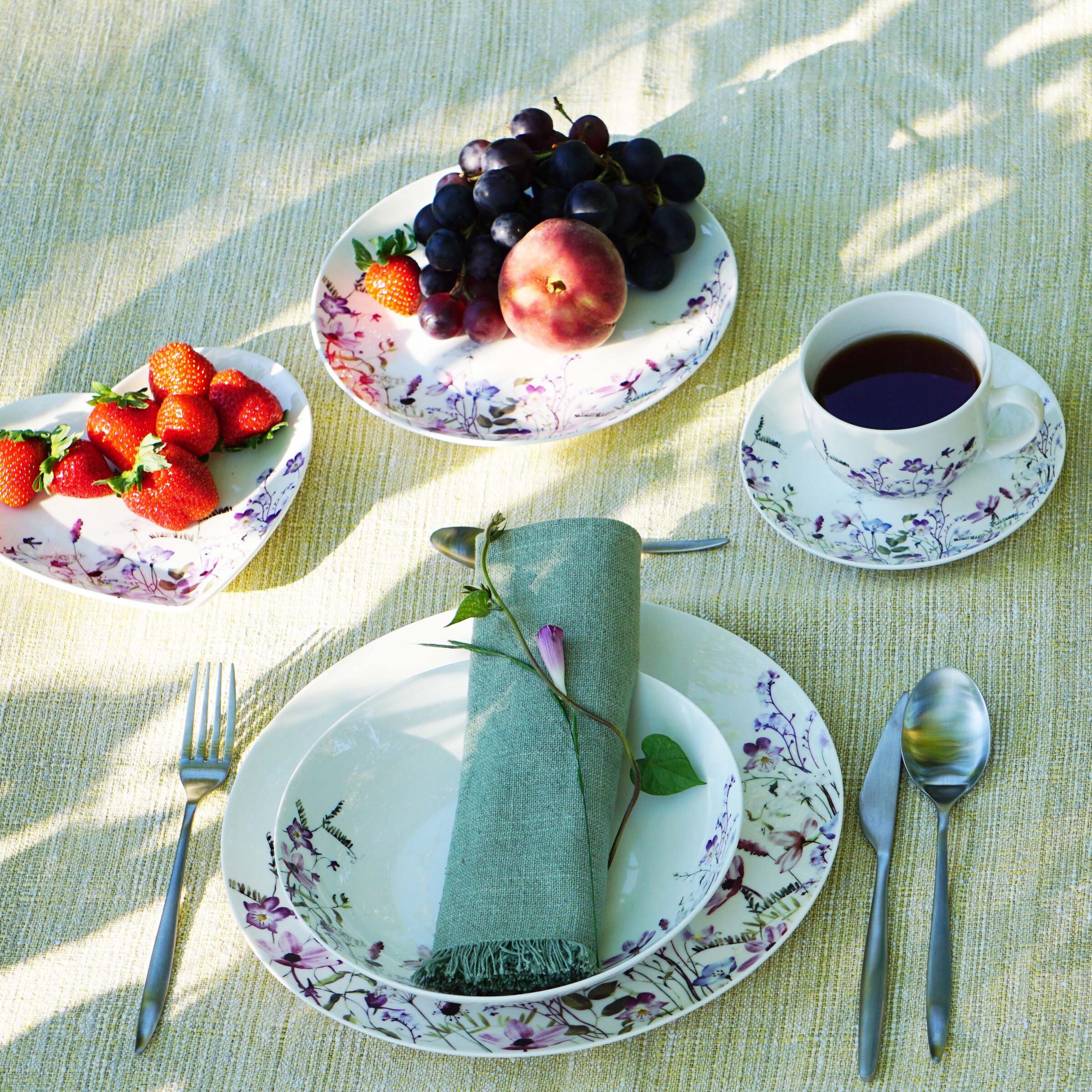 Motiv lučních květů připomíná hřejivé teplé dny a přináší do domova radost a lehkost. Jemné barvy a detailní kresba působí nadčasově a dokonale doplní servírování pohodové snídaně, hlavního chodu a sladkých i slaných dobrot s dobrou kávou či čajem. Kolekce Louka se snadno kombinuje s přírodními doplňky.