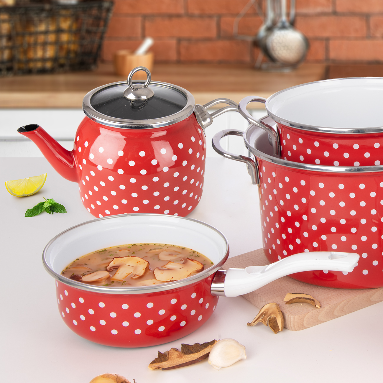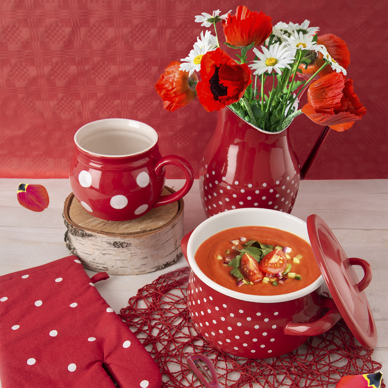 Zahrnuje především smalt, který je praktický a má dlouhou životnost, navíc z něho bude i krásná dekorace nejen na chalupu. Smaltované červené nádobí s bílými puntíky – klasika, která rozzáří každou kuchyni, navíc s nádechem nostalgie.