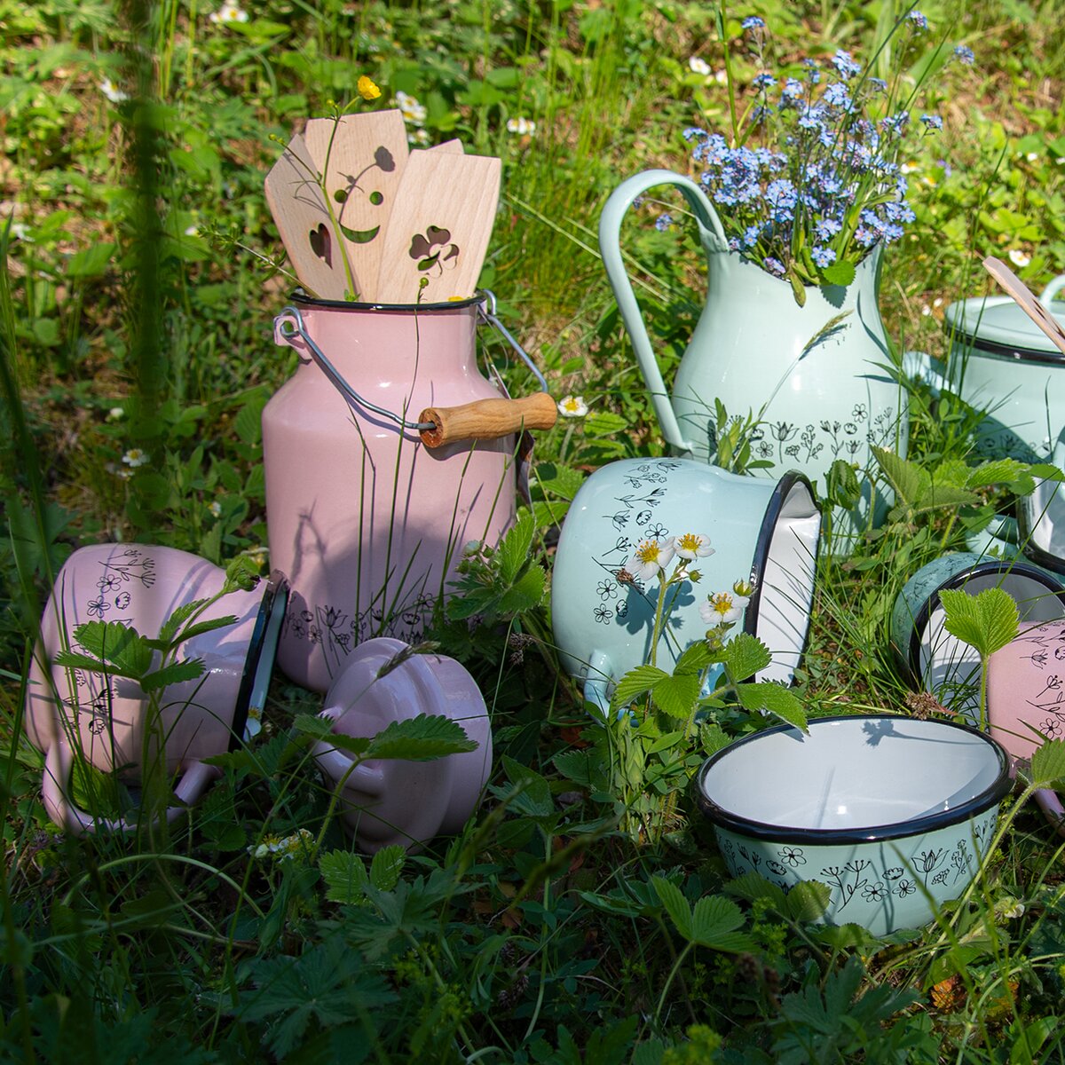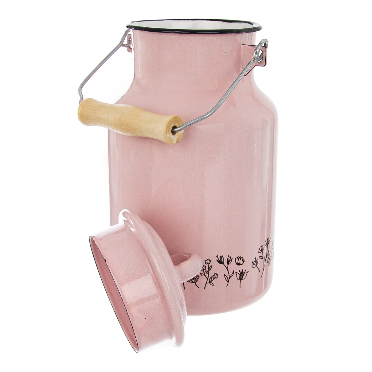 Pokud si chodíte kupovat čerstvé mléko, pořiďte si konvičku, díky které váš nákup donesete domů pohodlně a bez zbytečných ztrát. Tato smaltovaná konvice o objemu 2 l vynikne díky své pastelově růžové barvě a jemnému dekoru rozkvetlé louky. Navíc má ladící pokličku a praktické dřevěné ucho.