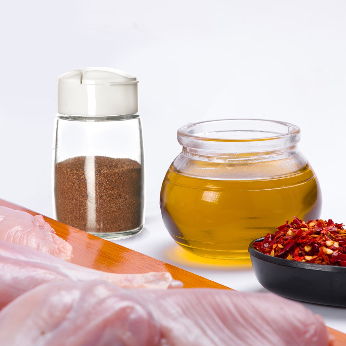 Kód produktu 155109Skleněná kořenka o objemu 100 ml s bílým plastovým víčkem uloží různé druhy koření, které poslouží k dochucování vařených pokrmů i finálního jídla u stolu.