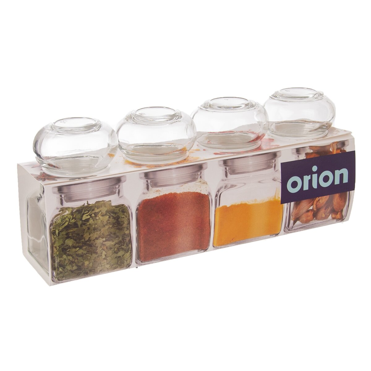 Kód produktu 153557Sada 4 hranatých skleněných kořenek s víčkem objemu 120 ml na uložení koření, bylinek, dochucovadel.