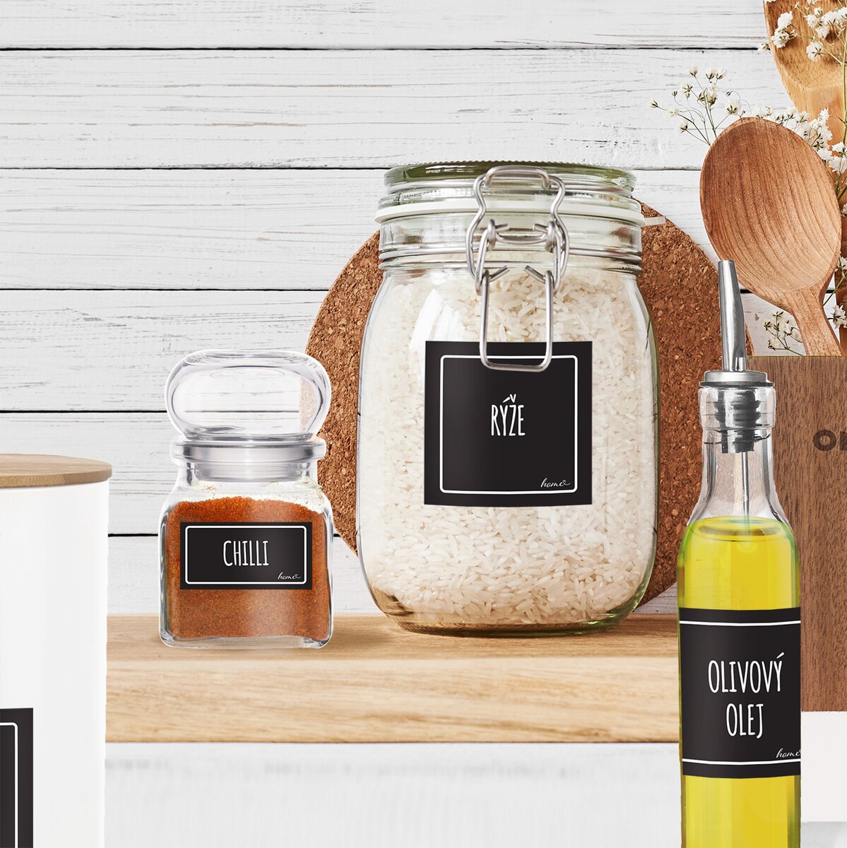 Hranatý tvar je praktický při uložení kořenek vedle sebe, do pojízdných kuchyňských boxů, závěsných systémů apod., navíc při vaření nevyklouzne z ruky.
