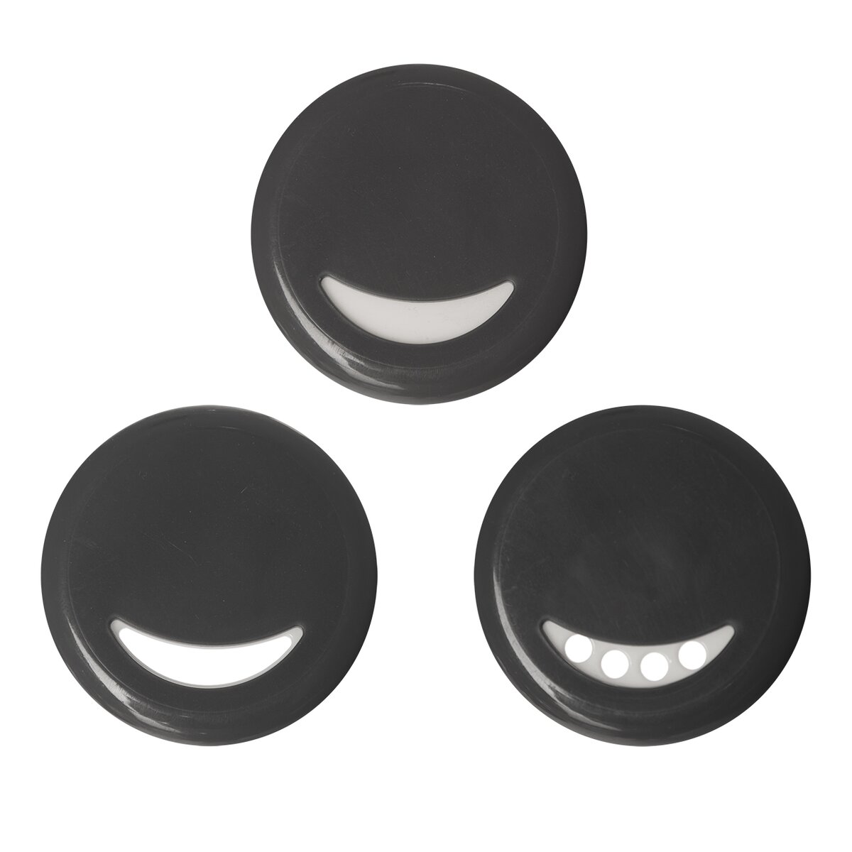 Kulaté otvory jsou ideální pro dávkování soli, pepře a různých směsí koření, např. grilovacího nebo mleté papriky. Velký otvor by mohl být použit na cukr, umělé sladidlo i polévkové koření.