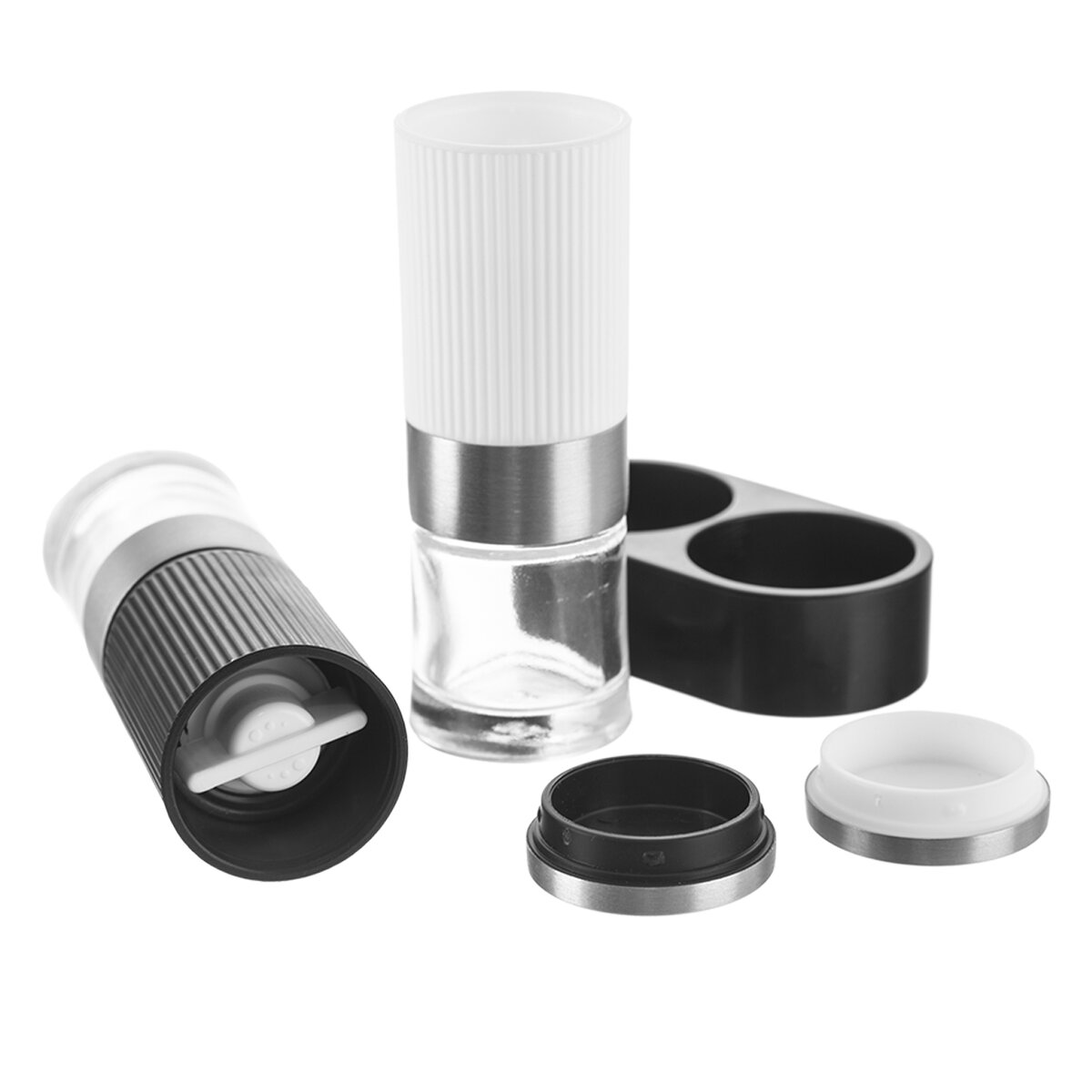 Kód produktu 155113Sada 2 malých kořenek - mechanických mlýnků na sůl, pepř či jiné koření je uložena v praktickém stojánku. Možnost nastavení hrubosti mletí pomocí závitu, mletí zajistí keramický mlecí mechanismus.