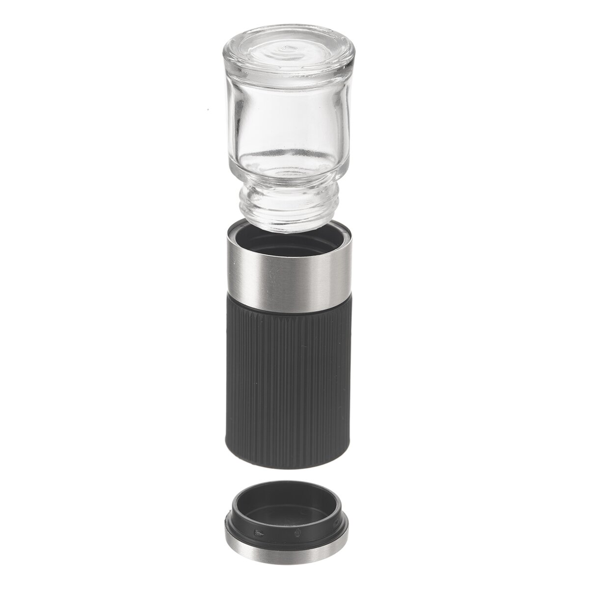 Stačí do skleněné části se závitem nasypat koření, uzavřít středním mlecím dílem s částmi z nerezové oceli 18/8. Plastový díl má navíc praktické vroubky, jenž brání prokluzování v rukou a krycí víčko. Hrubost mletí umožňuje nastavitelný mlecí mechamismus.