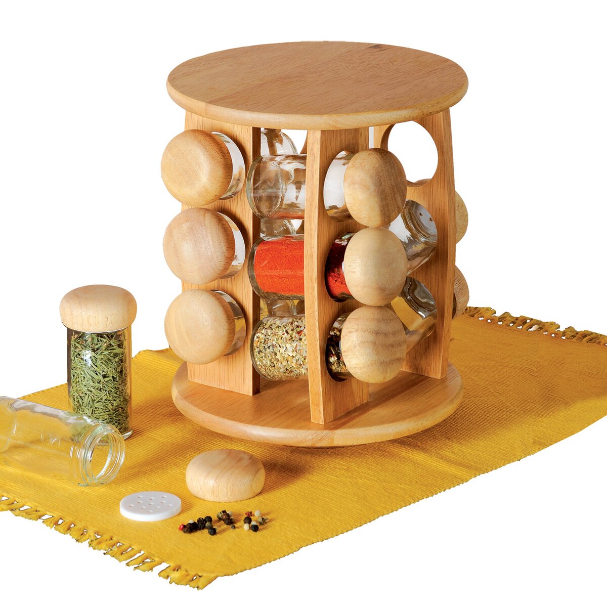 Absolutní nutností při vaření a pečení je perfektní dochucení. Designovým a zároveň praktickým pomocníkem je otočný dřevěný stojan s 12 kořenkami objemu 80 ml. Usnadní vám hledání koření a urychlí tak přípravu pokrmů.