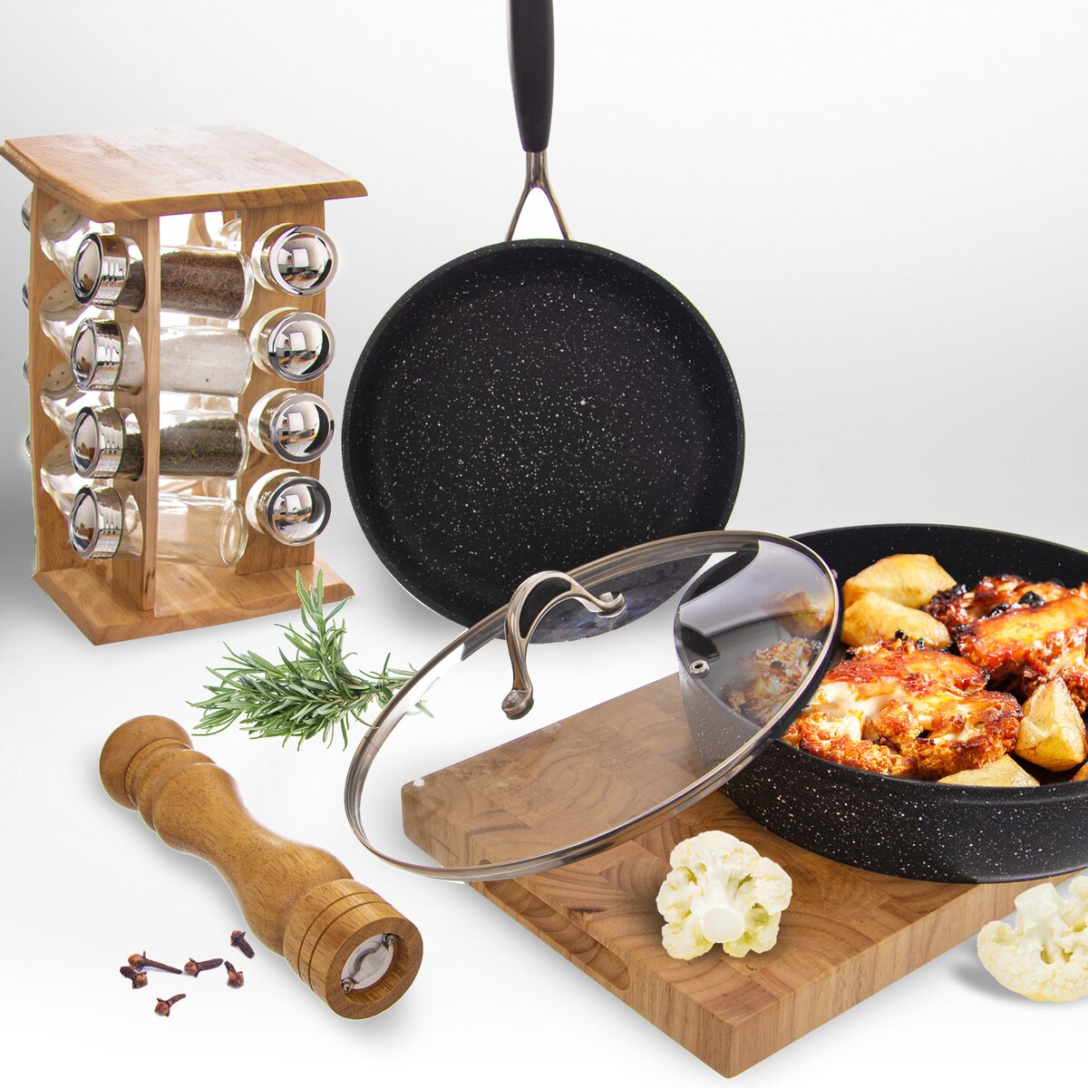 Absolutní nutností při vaření a pečení je perfektní dochucení. Designovým a zároveň praktickým pomocníkem je otočný dřevěný stojan se 16 kořenkami objemu 80 ml. Usnadní vám hledání koření a urychlí tak přípravu pokrmů.