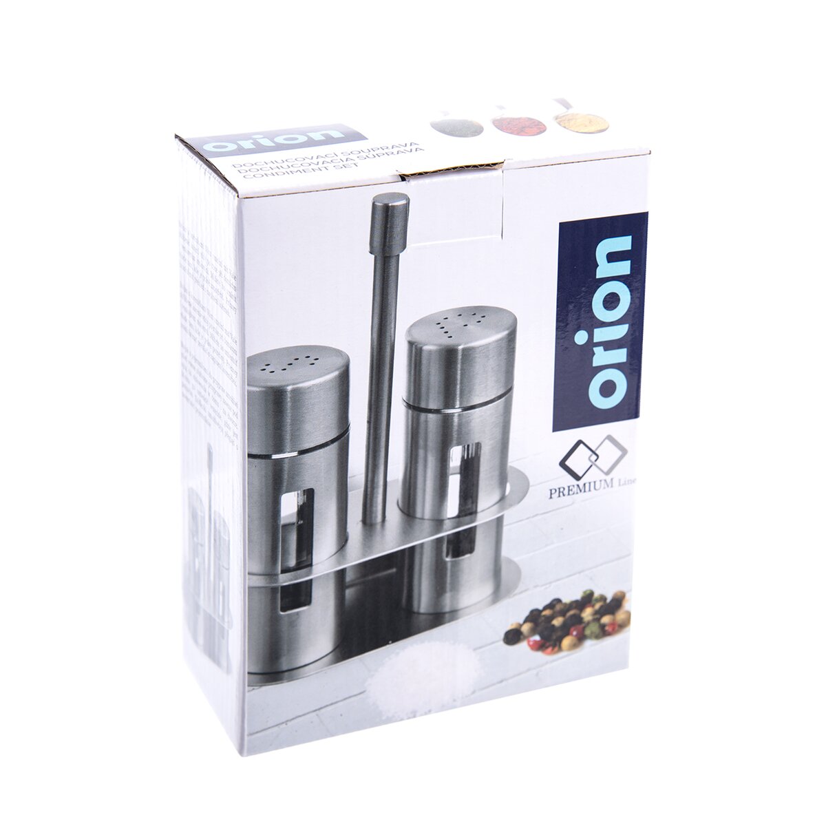 Kód produktu 152364Dochucovací sada obsahující nerezový stojánek o rozměrech 11×5,5×16 cm a dvě nerezové kořenky o průměru 4 cm.