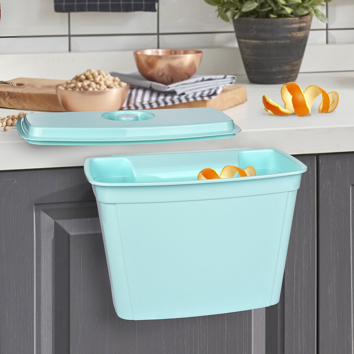 Zbytky jídla po krájení čí loupání stačí je shrnout do zavěšeného koše a je uklizeno. Díky praktickému víku jsou odpadky uzavřené a nejsou v domácnosti cítit.