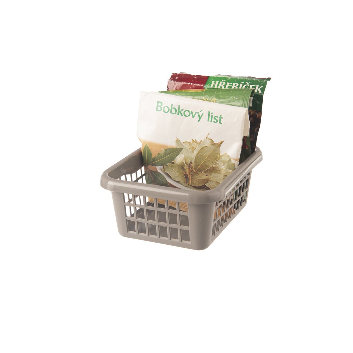 Malý plastový košík do vaší domácnosti, který umožní uložení a přenášení drobných předmětů.