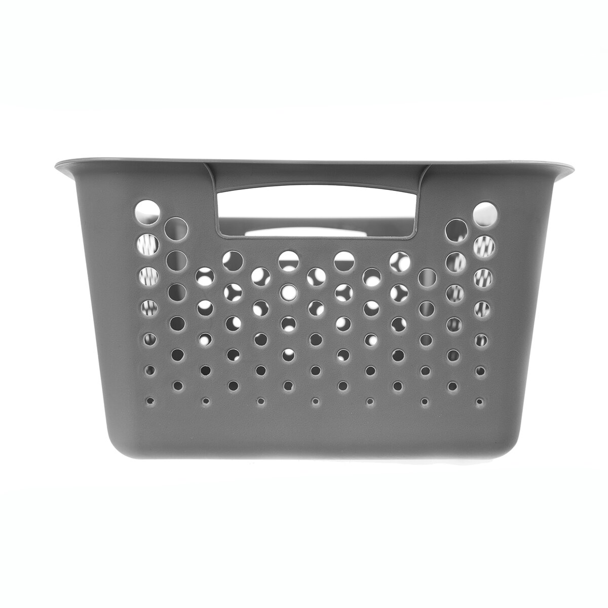 Kód produktu 731614Šedý plastový košík o rozměrech 36,5x25,5x14,5 cm slouží k uložení nejrůznějších předmětů v domácnosti.