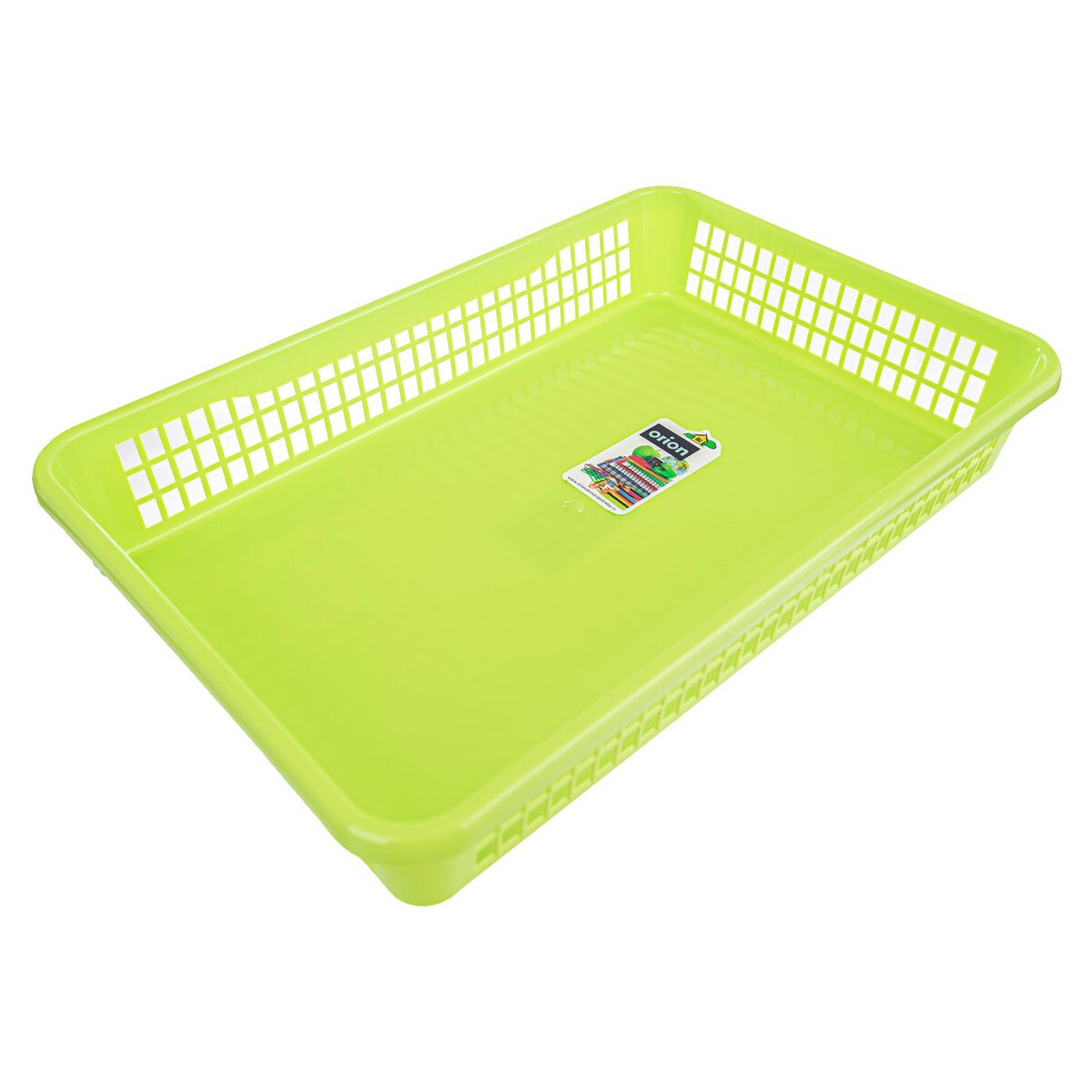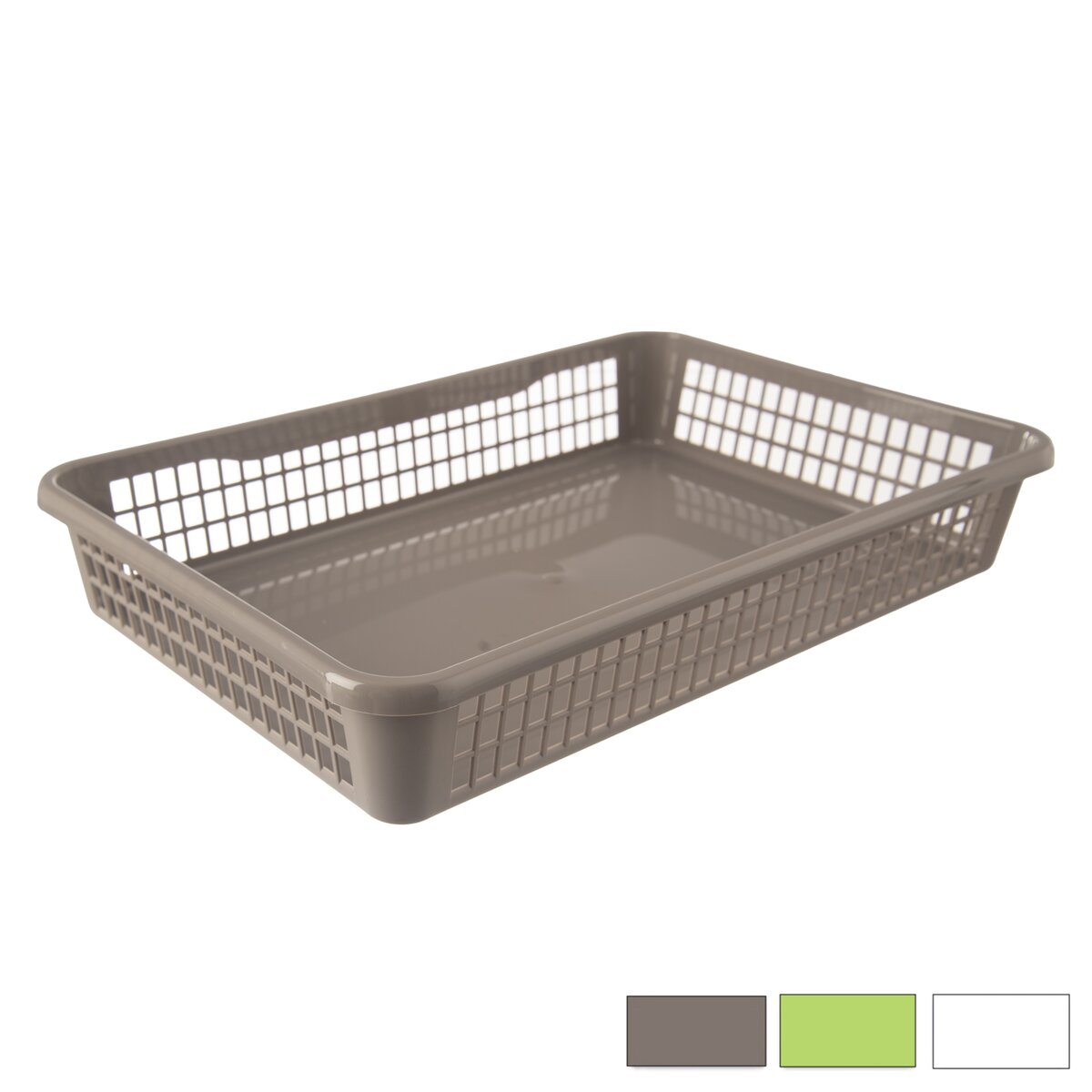 Kód produktu 731170Barevný plastový košík o rozměrech 38,5×25,5×6,5 cm. Slouží k uložení menších předmětů v domácnosti.