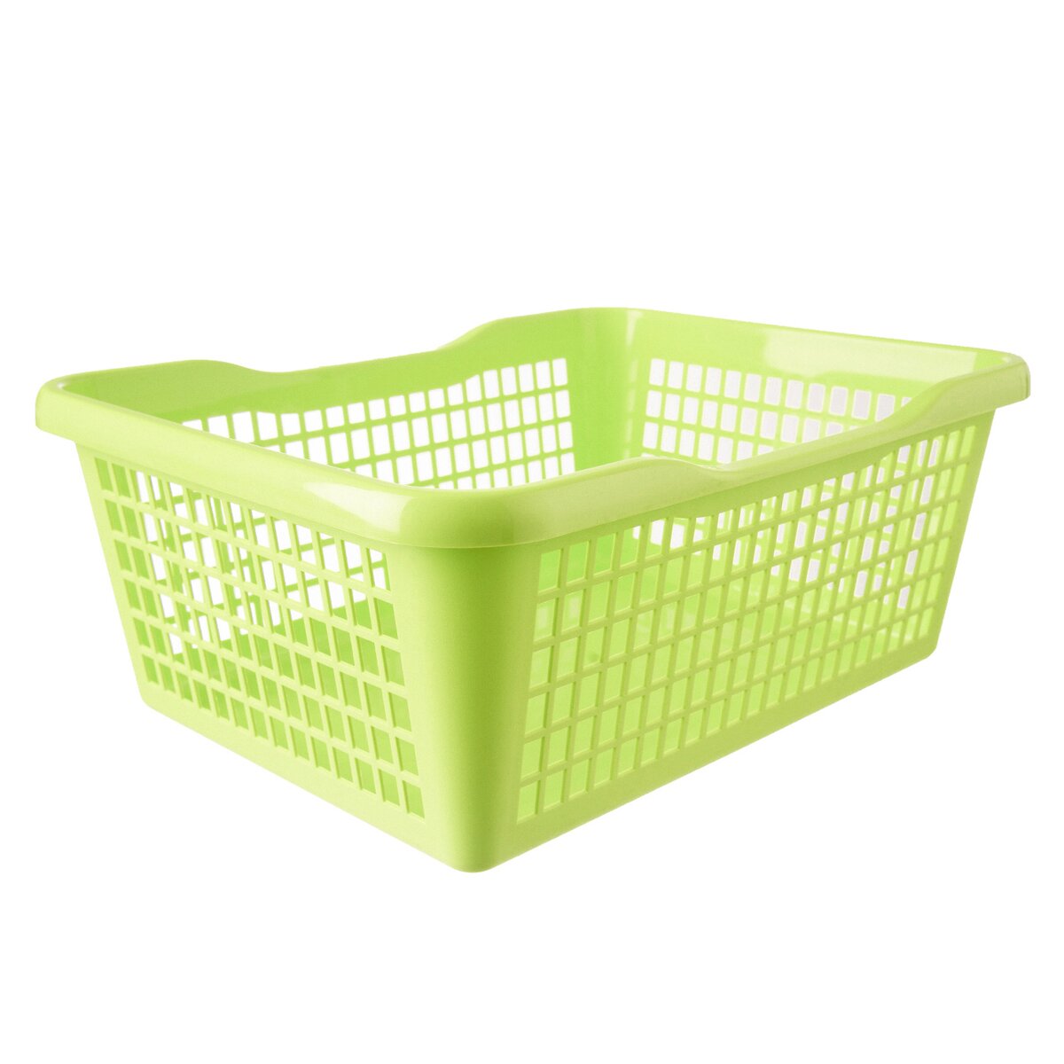 Kód produktu 731144Barevný plastový košík o rozměrech 42×32×17 cm. Slouží k uložení drobných předmětů v domácnosti.