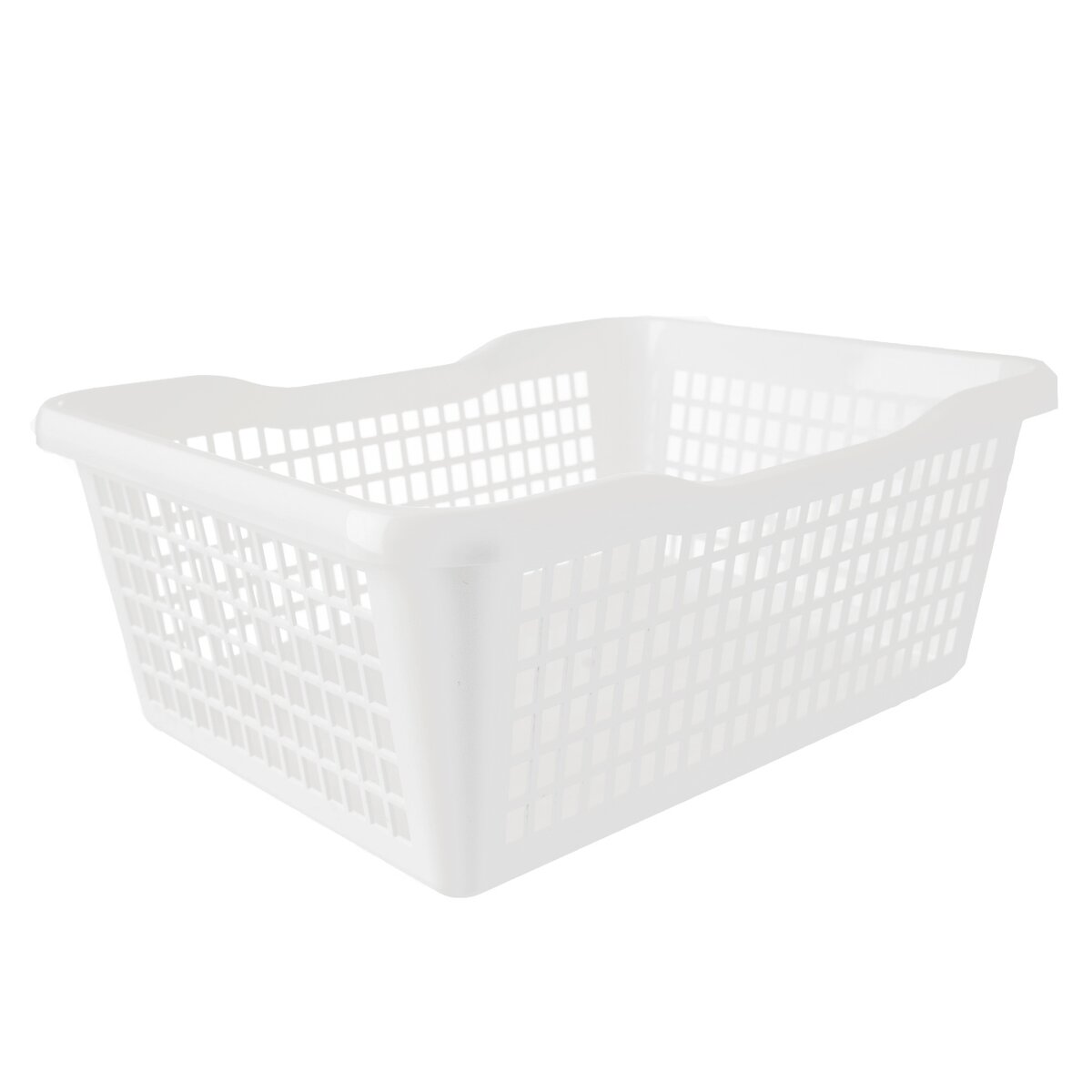 Velký plastový košík o rozměrech 42×32×17 cm, který poslouží k organizaci a přenášení nejrůznějších předmětů ve vaší domácnosti.
