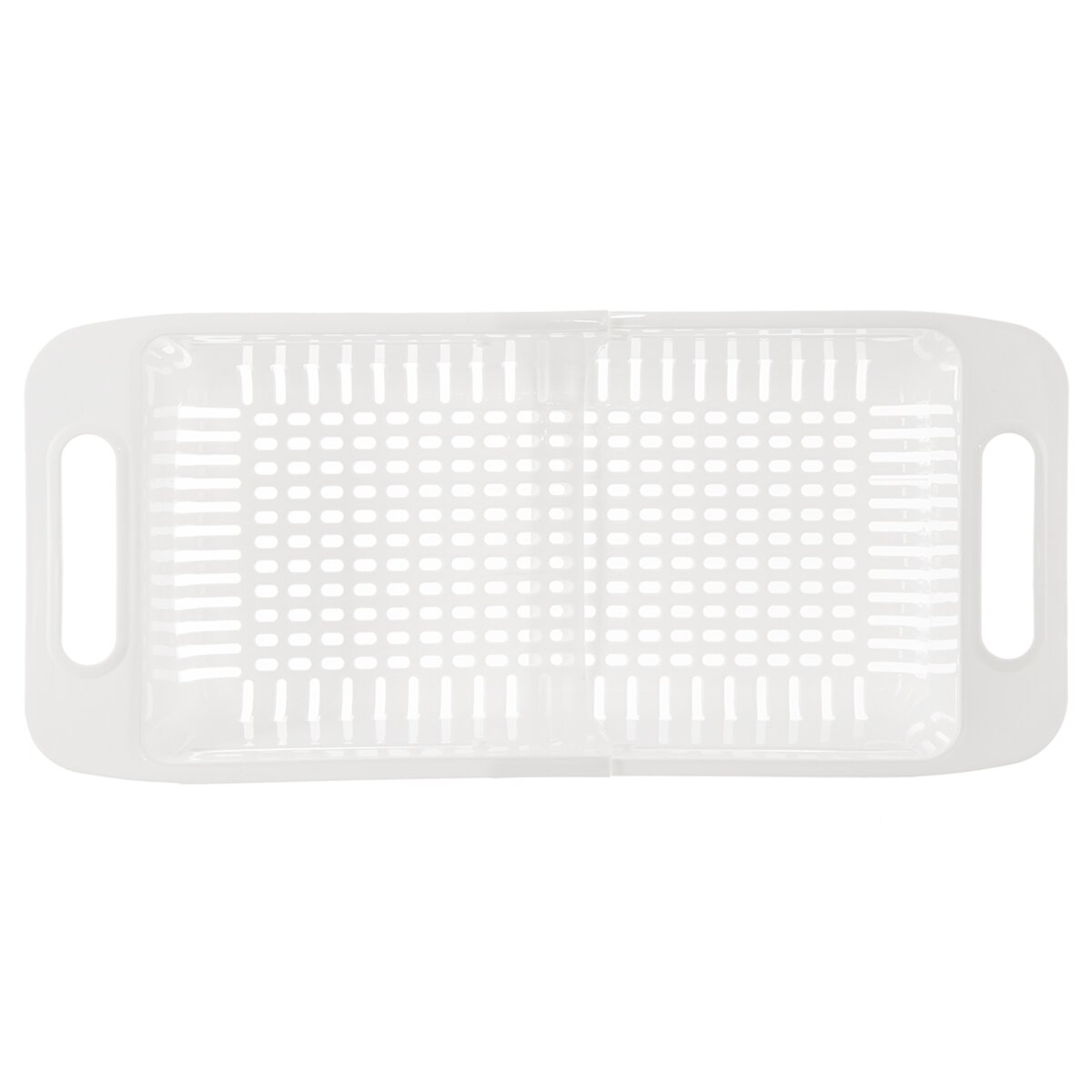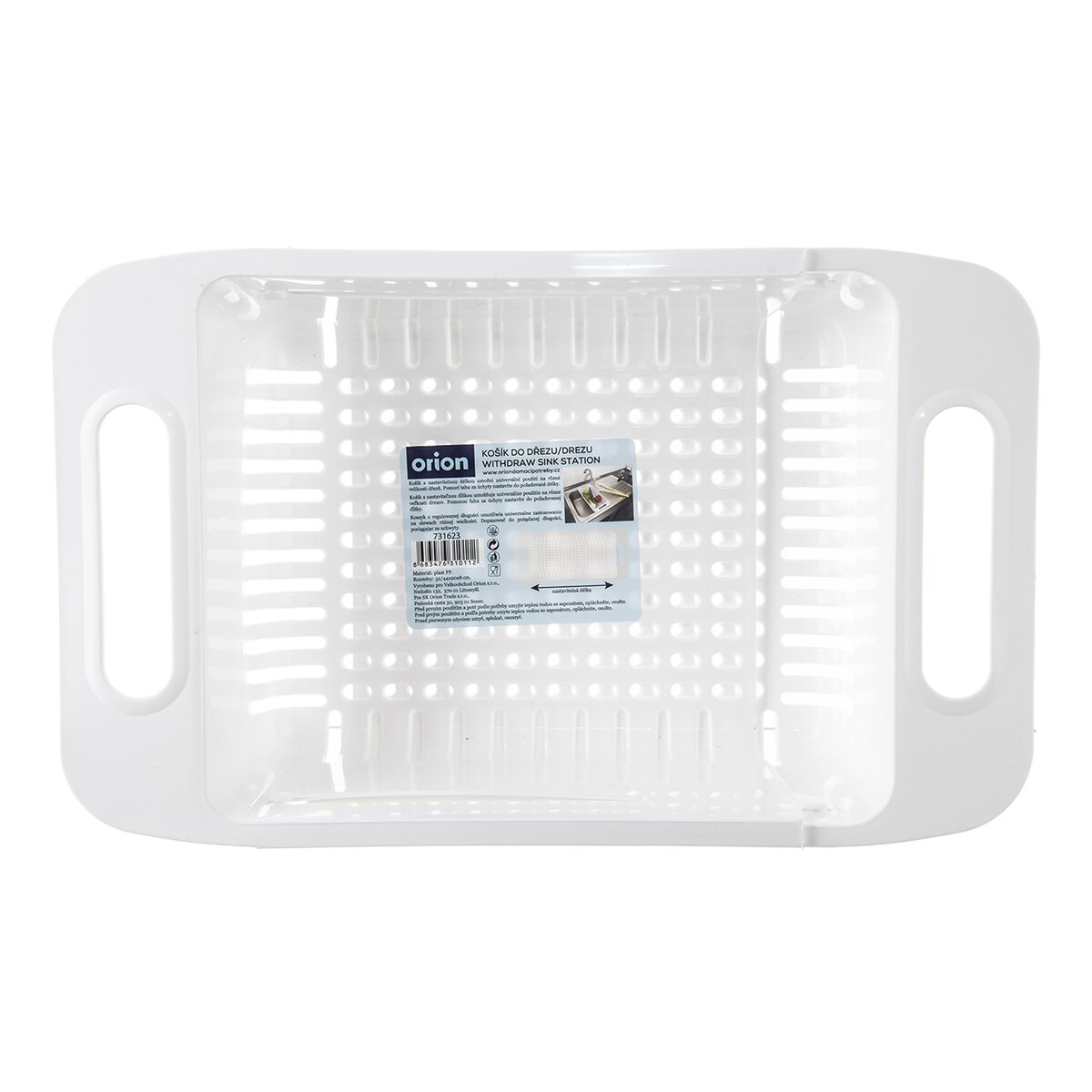Kód produktu 731623Plastový košík s nastavitelnou délkou umožní univerzální použití na různé velikosti dřezů. Snadno ho pomocí tahu za úchyty nastavíte do požadované délky a omyjete ovoce, zeleninu a propláchnete různé potraviny.