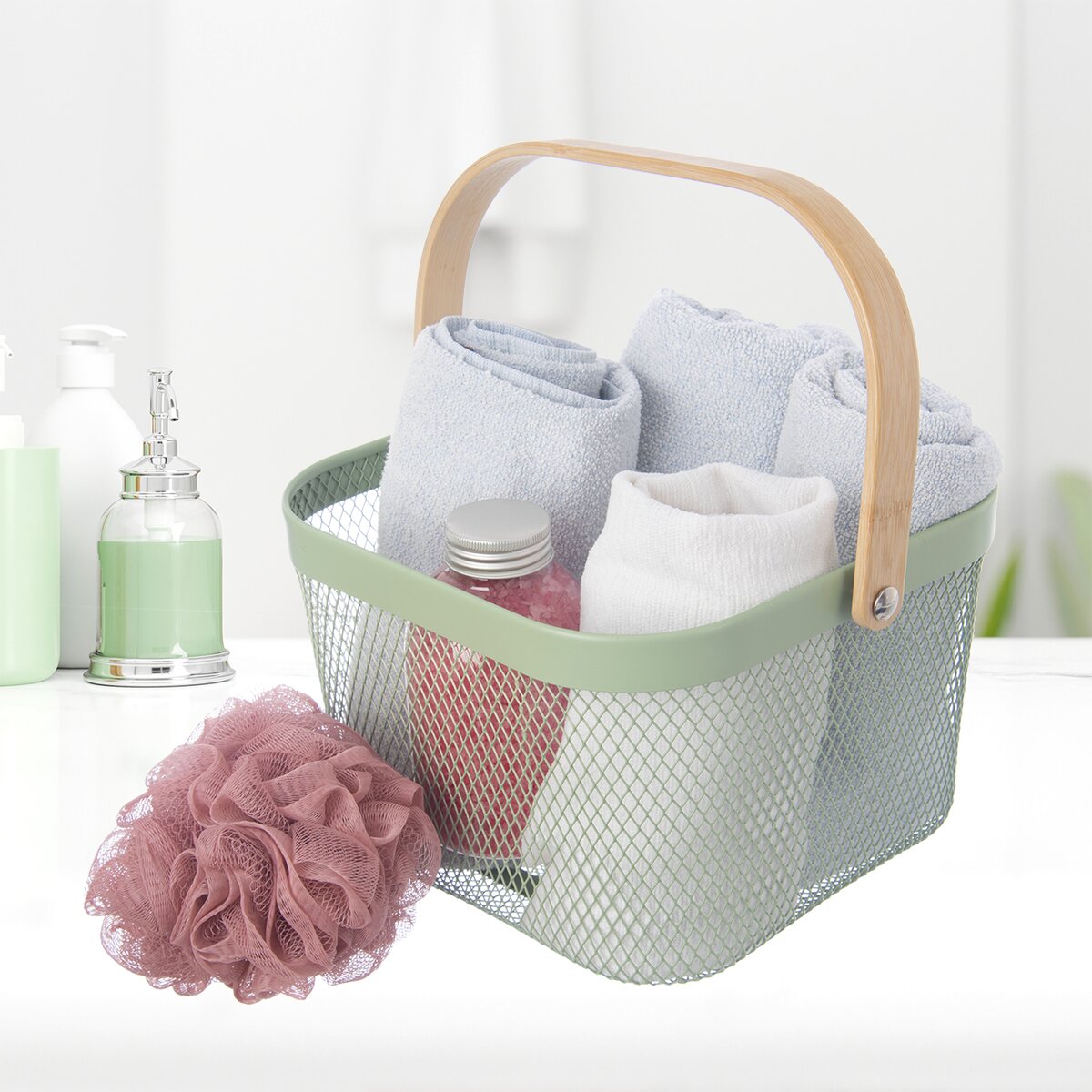 Zelený kovový košík najde v domácnosti široké uplatnění. Využít jej lze na uložení ovoce, zeleniny, klubek vlny nebo příze, menších ručníků či drogerie v koupelně, toaletního papíru na WC, můžete si jej vzít do lesa na houby.
