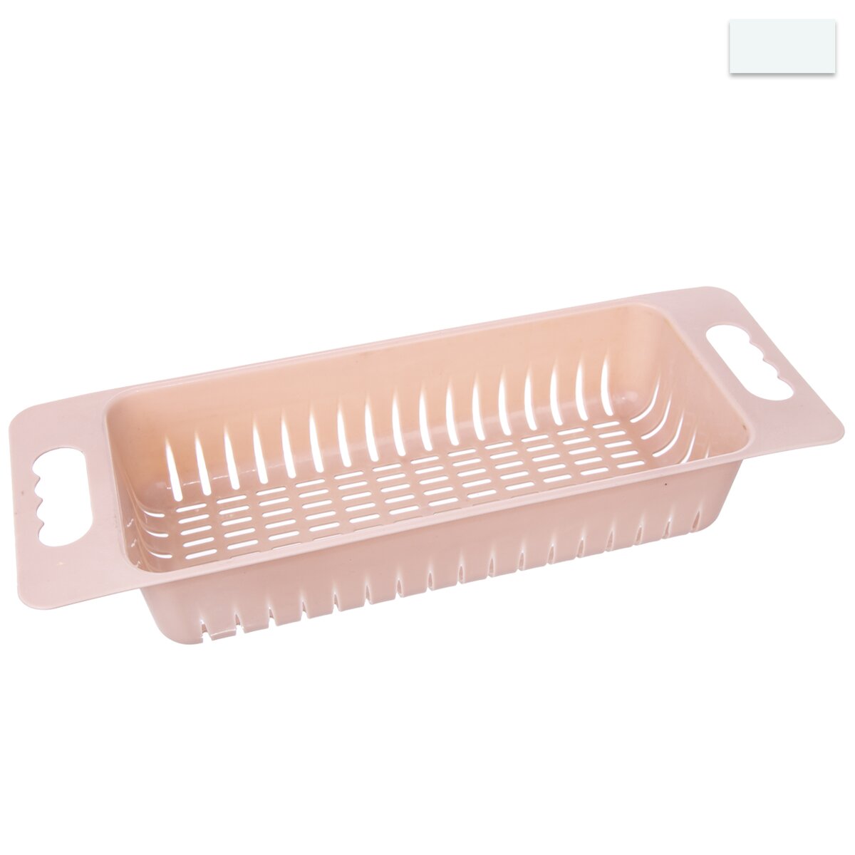 Košík na dřez vyřeší skvěle prostor pro uložení houbičky na nádobí, drátěnky, saponátu, kartáče na nádobí nebo štětky na láhve... Nebudou ležet ve dřezu, rychle proschnou. Můžete ho využít také jako odkapávač pro příbory, hrnek od čaje. Materiál: plast. Assort barev. Rozměry: 46x16,5x8 cm, vnitří d. 35 cm.