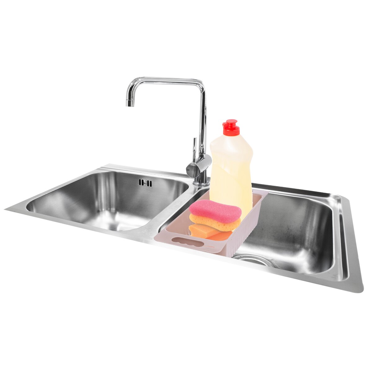 Kód produktu 731176Košík na dřez vyřeší skvěle prostor pro uložení houbičky na nádobí, drátěnky, saponátu, kartáče na nádobí nebo štětky na láhve... Nebudou ležet ve dřezu, rychle proschnou. Můžete ho využít také jako odkapávač pro příbory, hrnek od čaje. Materiál: plast. Assort barev. Rozměry: 46x16,5x8 cm, vnitří d. 35 cm.
