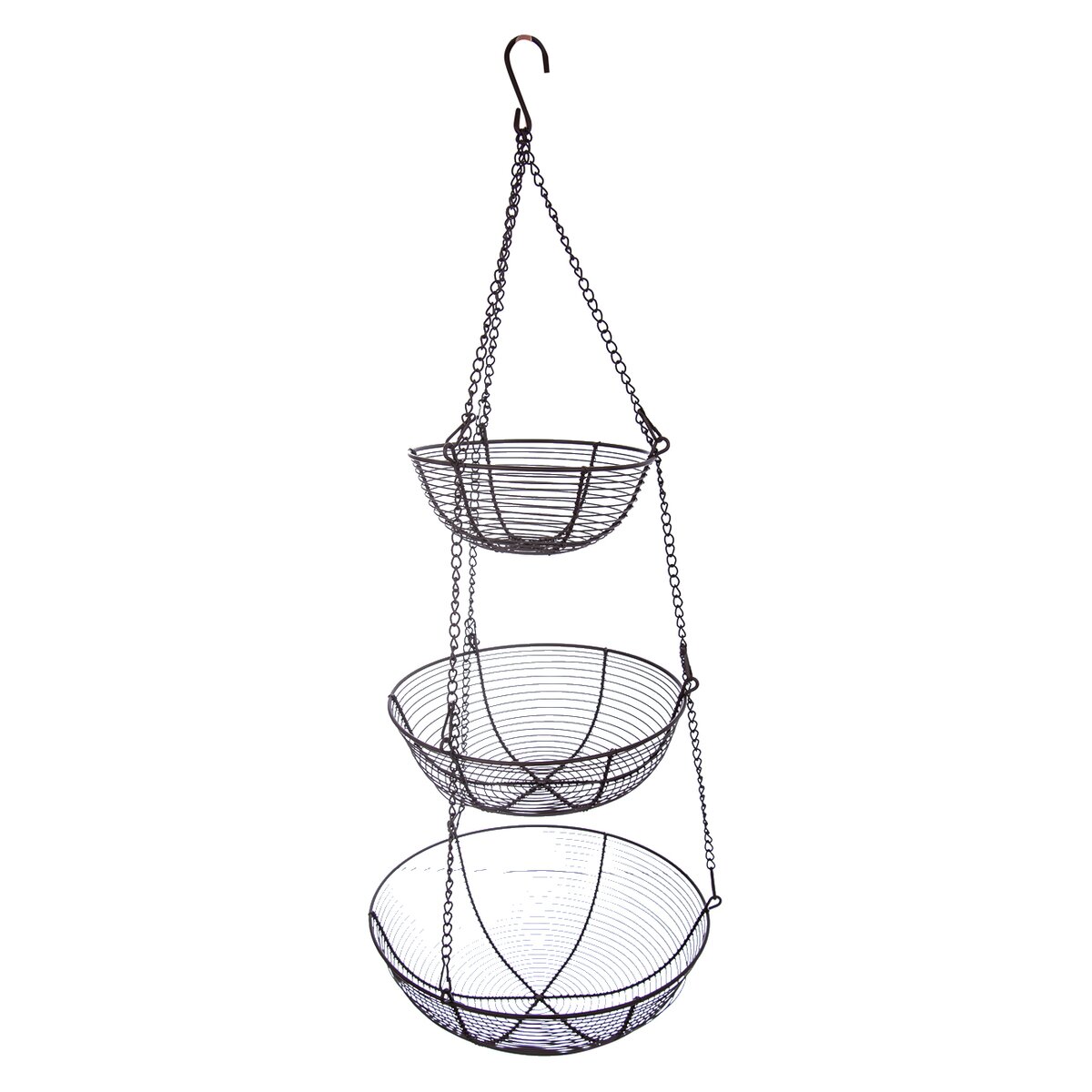 Kód produktu 540579Třípatrový závěsný košík na ovoce bude vypadat skvěle v moderní i klasické kuchyni. Materiál: drát s povrchovou úpravou. Nosnost 3 kg. Rozměry: pr. 20, 25 a 30 cm, v. 83 cm.