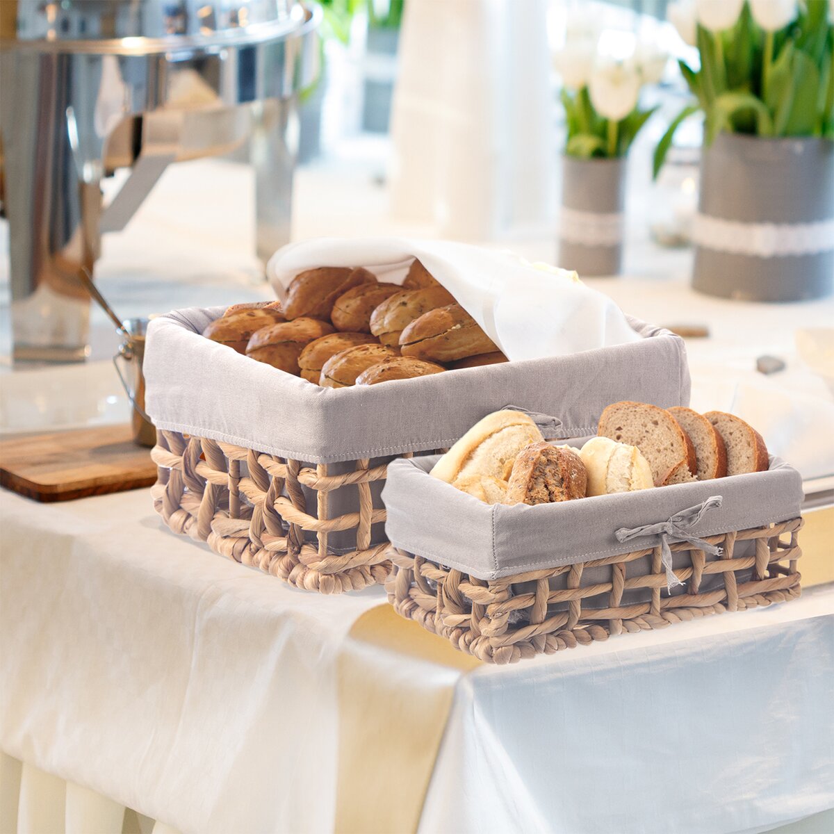 Více informacíNejen v restauracích při kontinentální snídani nebo na rautu lze k uložení pečiva využít ručně pletený košík z vodního hyacintu. Tento je doplněn odnímatelnou šedou bavlněnou vsadkou.