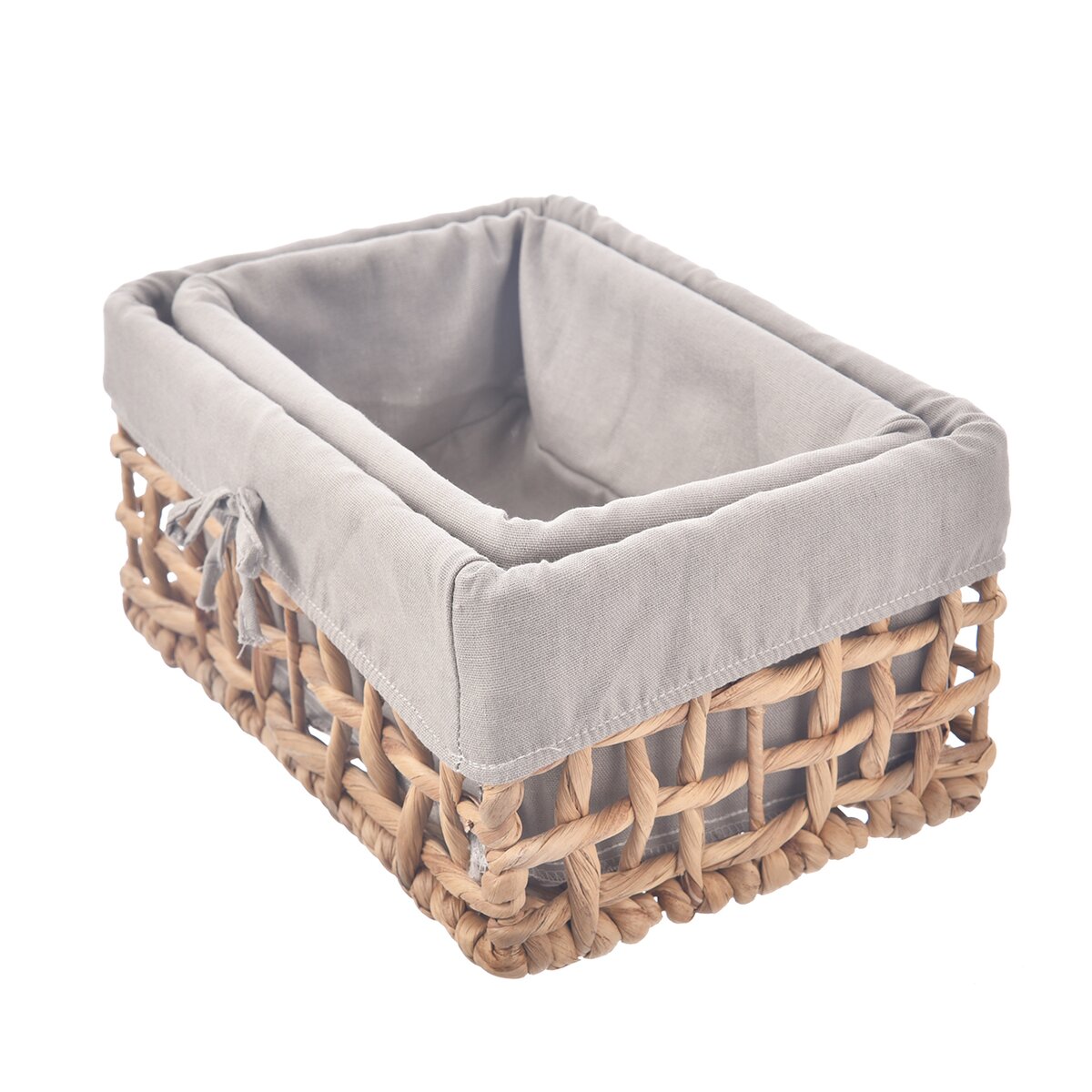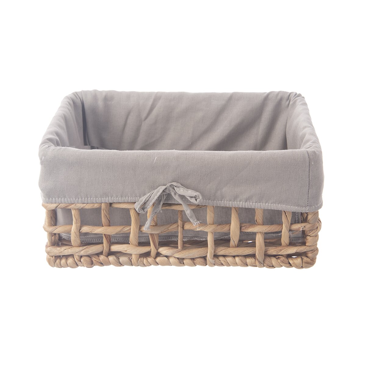 Kód produktu 731626Hranatý košík o rozměru 31x21x14,5 cm z vodního hyacintu je doplněn bavlněnou šedou vsadkou. Vhodný k ukládání a servírování pečiva i k uložení různých drobností nejen v domácnosti.