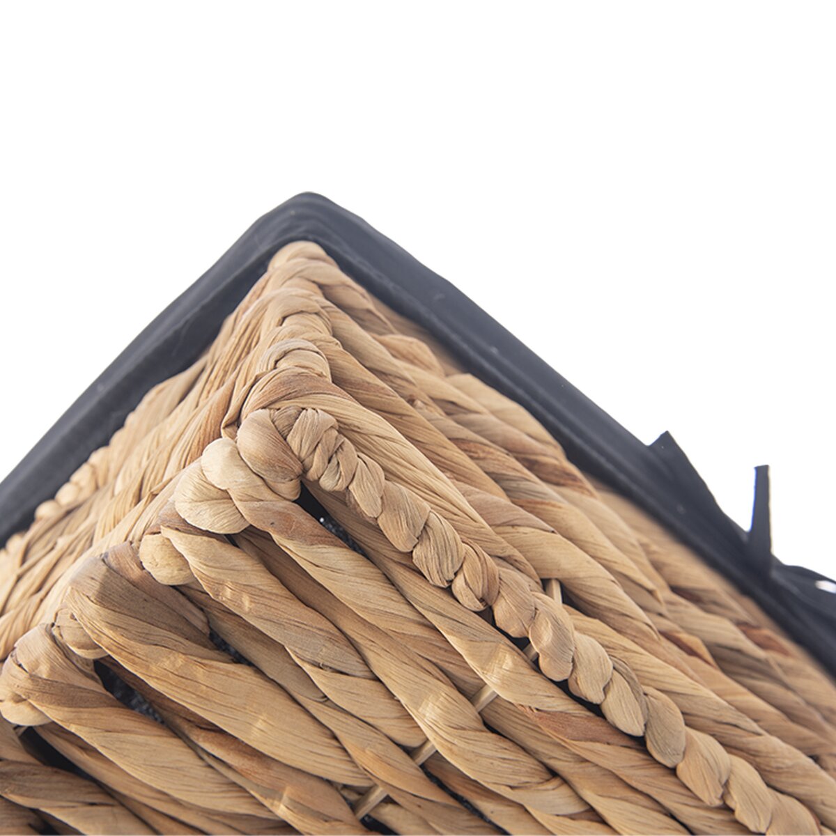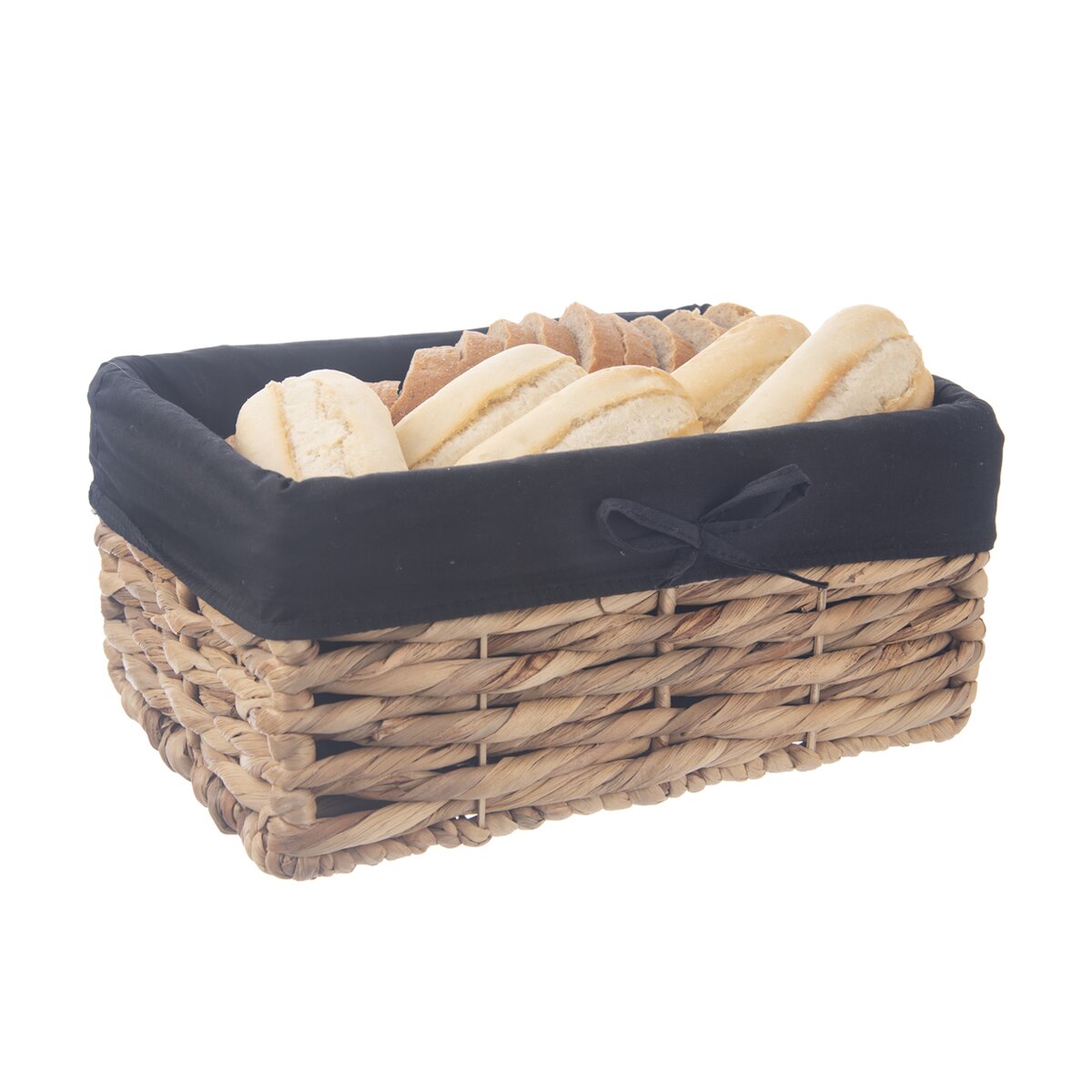 Kód produktu 731628Hranatý košík o rozměru 36x26x16,5 cm z vodního hyacintu je doplněn bavlněnou černou vsadkou. Vhodný k ukládání a servírování pečiva i k uložení různých drobností nejen v domácnosti.