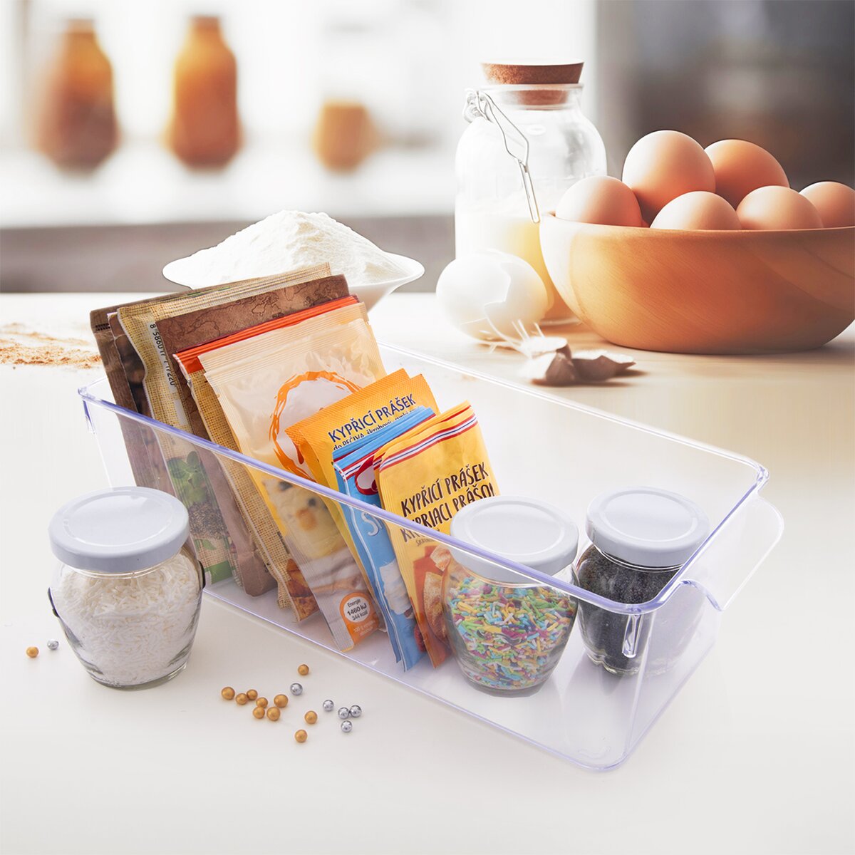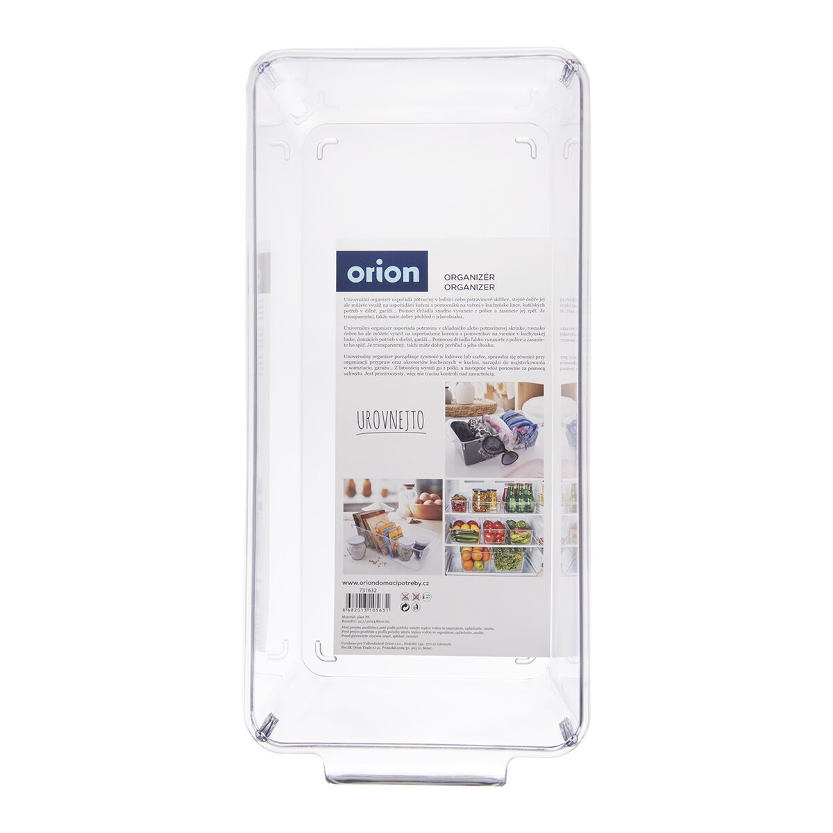 Kód produktu 731632Transparentní plastový košík/organizér o velikosti 32,5x14,8x10 cm pomůže přehledně uložit a uspořádat potraviny v ledici, ale i různé předměty a pomocníky v zásuvkách i jiných úložných prostorách.