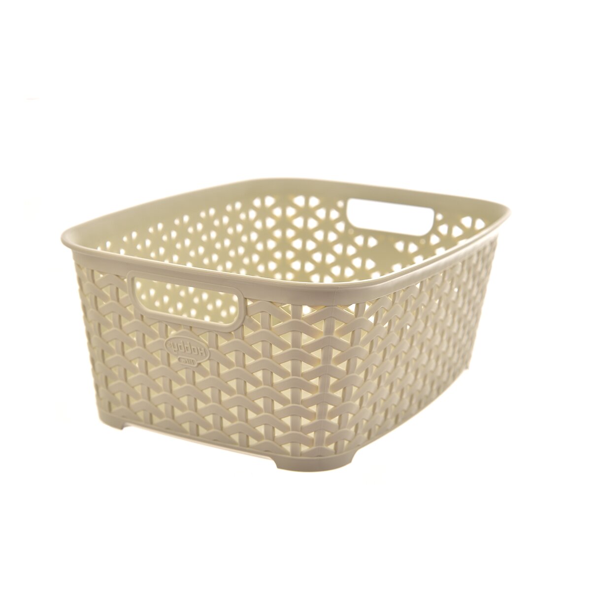 Kód produktu 731603Krémový plastový košík RATAN hranatého tvaru, doplněný dvěma uchy.