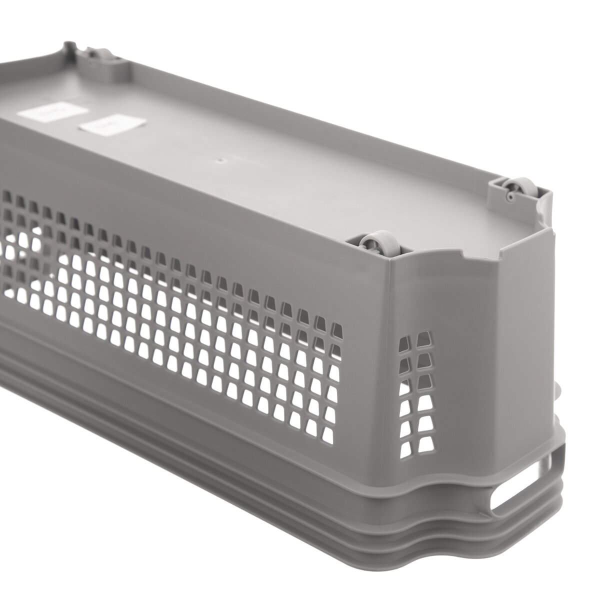 Manipulaci s košíkem a jeho obsahem usnadňují 4 kolečka umístěna zespodu nádoby. Výhodou jsou i dva úchopy usnadňující jeho přenášení. Košíky jsou stohovatelné, díky čemuž ušetříte místo v poličkách nebo ve skříních. Vyrábí se v bílém nebo šedém provedení.