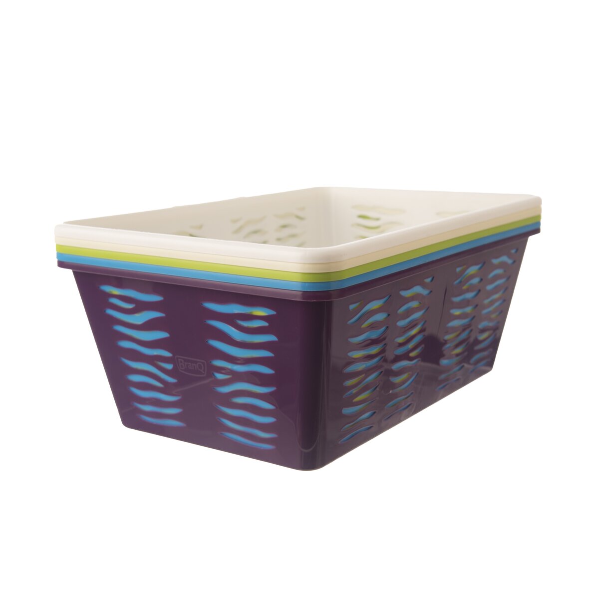 Kód produktu 731128Barevný plastový košík ZEBRA o rozměrech 30×20×11 cm. Slouží k uložení drobných předmětů v domácnosti.