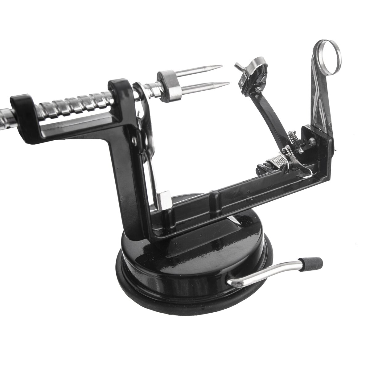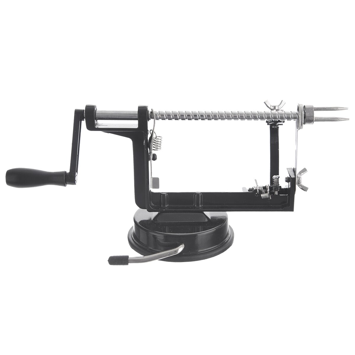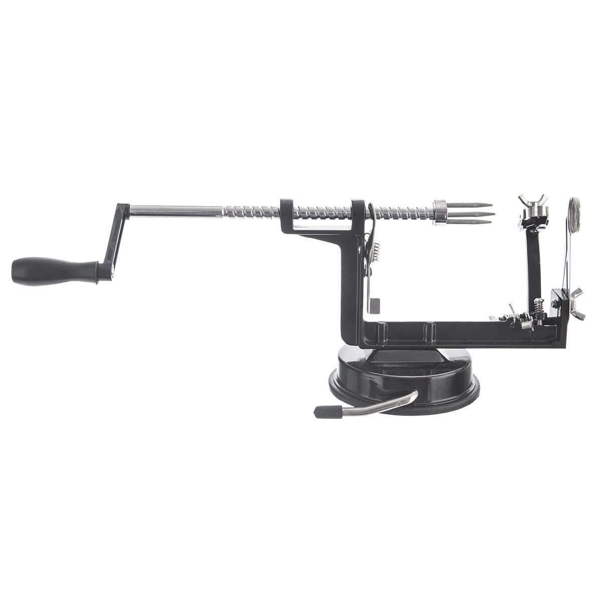 Kód produktu 125705Kovový mechanický kráječ jablek je určen k loupání slupky, odstranění jadřince a vytvoření spirály pro přípravu plátků. Snadno se upevní k desce pomocí přísavky.