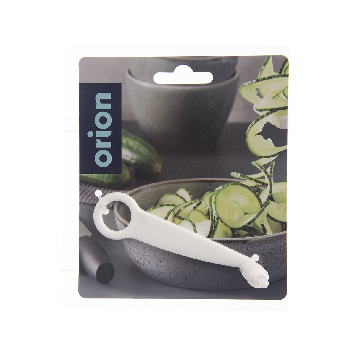 Kód produktu 140782Plastový kráječ s krájecí plochou, závitem a rukojetí s očkem vytvoří jednoduchým otáčivým pohybem spirály. Lze použít na brambory, okurky, cuketu či mrkev.