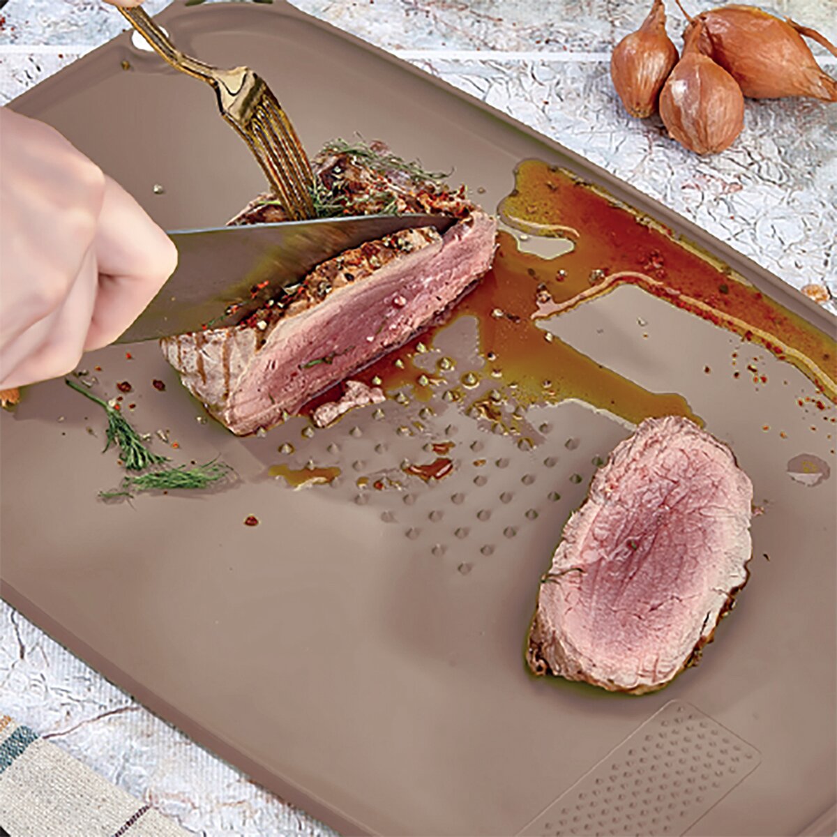 Více informacíPraktické prkénko s hladkou krájecí plochou má mírný sklon, takže i při krájení šťavnatějších potravin, např. masa, rajčat, ovoce, tekutina steče ke kraji a nedojde k ušpinění kuchyňské linky. Je multifunkční, opatřené z obou stran protiskluzovými podložkami.